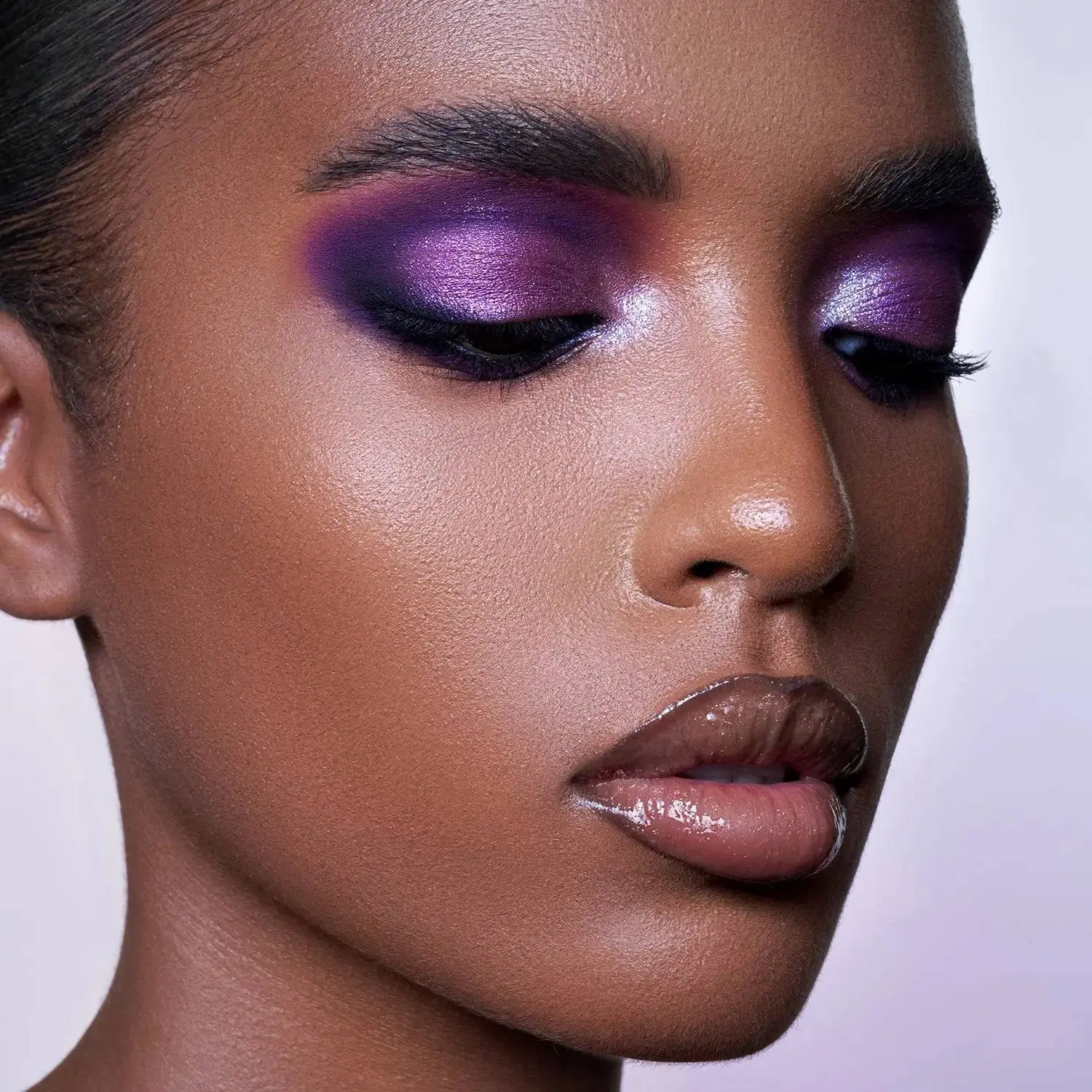 Use your finger to mix both shades in the pan to create your custom icy-purple duo chrome shade and swipe onto the eyelid.