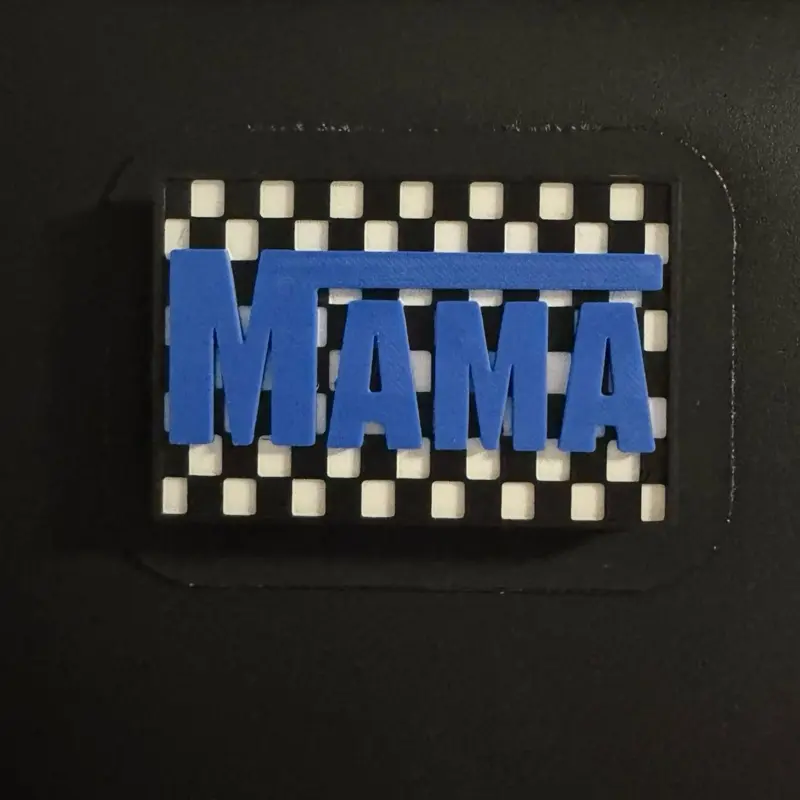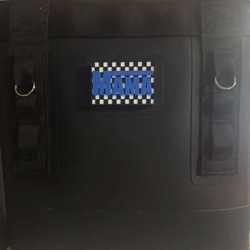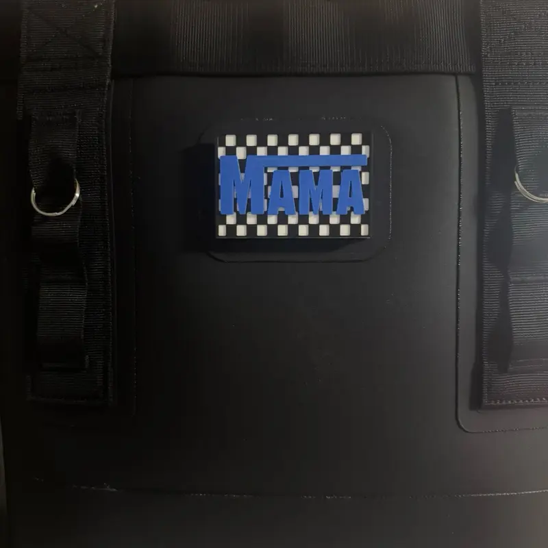2”x3” Checkered Mama with Velcro bag / tote patch with adhesive Velcro hook piece on back to stick to bags with loop pieces