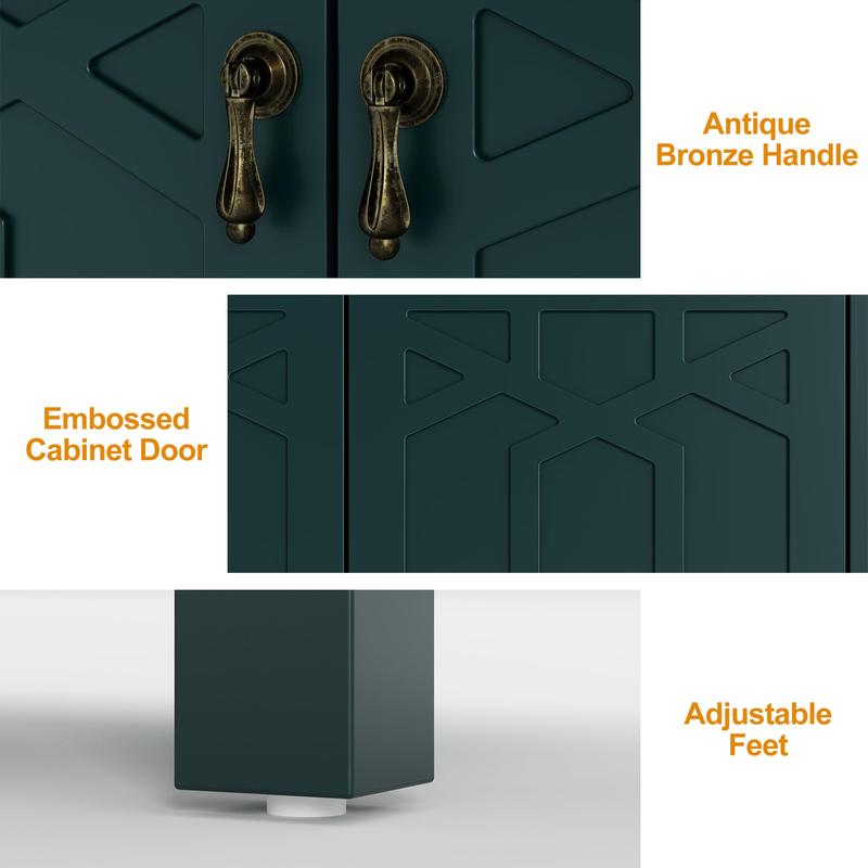 Transform your space with this stylish storage cabinet, featuring 3-level adjustable shelves for personalized organization. Its sleek black finish and vintage bronze handles add character, while the soft-close doors ensure quiet use. This buffet cabinet can serve as a chic TV stand, a practical pantry, or an elegant entryway table. With a waterproof, easy-to-clean surface, it’s perfect for DIY enthusiasts looking to customize its look—whether you want to add stencils, paint, or unique hardware, the options are endless. Create a cozy environment while showcasing your personal style with this beautiful accent piece!