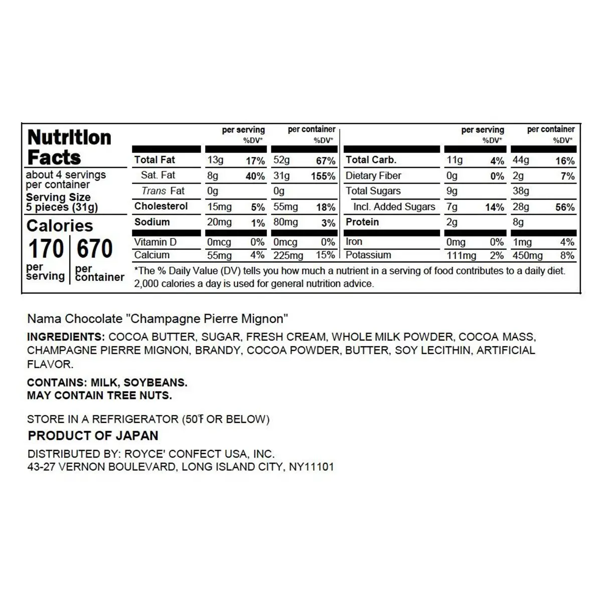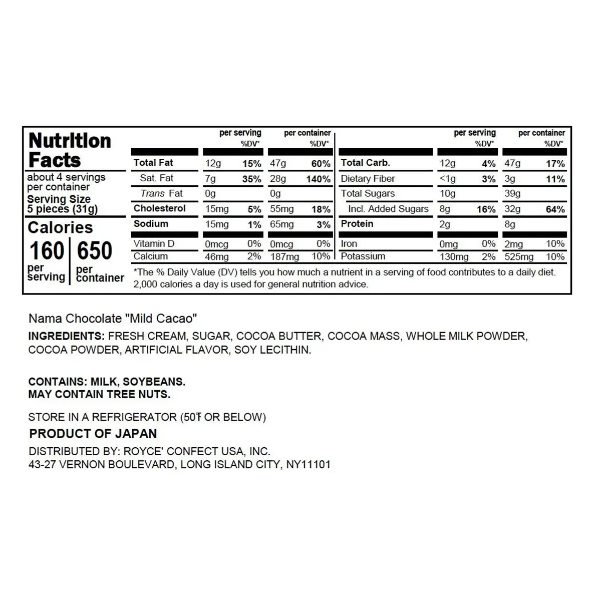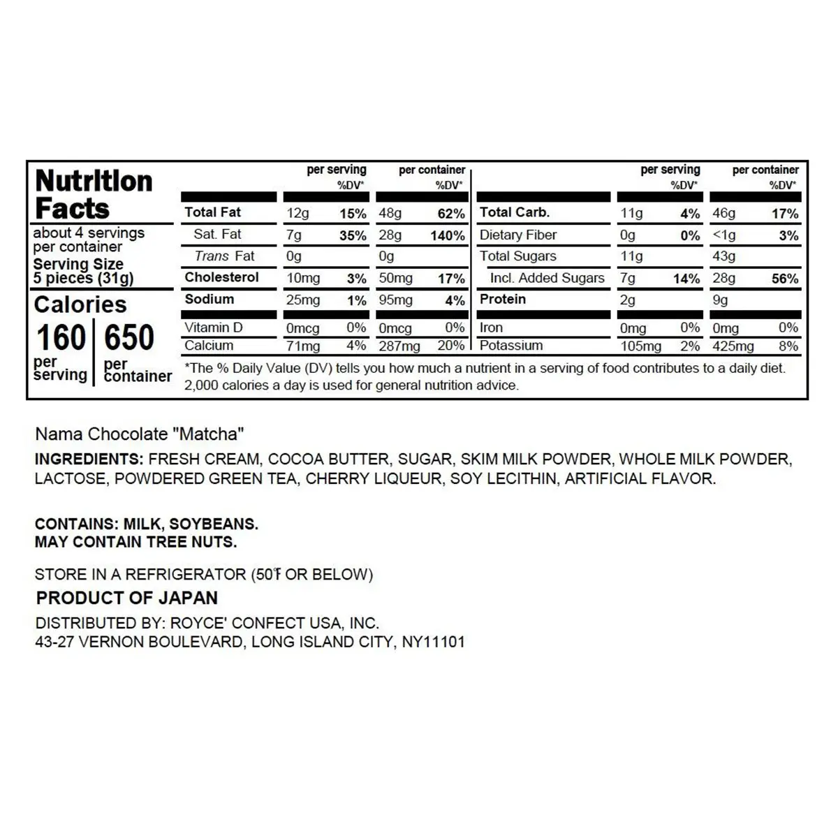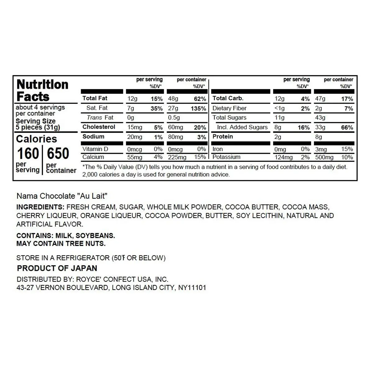 Allergens: Milk, Soy, May Contain Tree Nuts