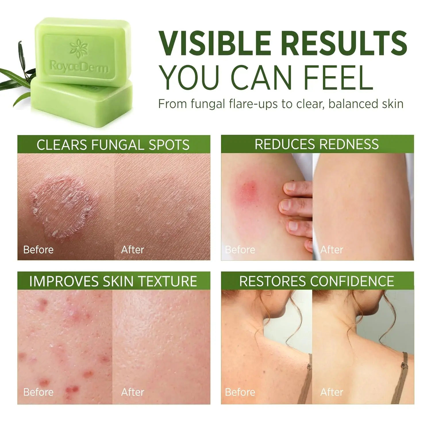 ·Trusted Brand, Exceptional Service: Roycederm offers natural and effective skincare solutions, including our popular antifungal soap and tea tree body wash. Trust our brand for high-quality products and exceptional customer service on your journey to healthier skin.