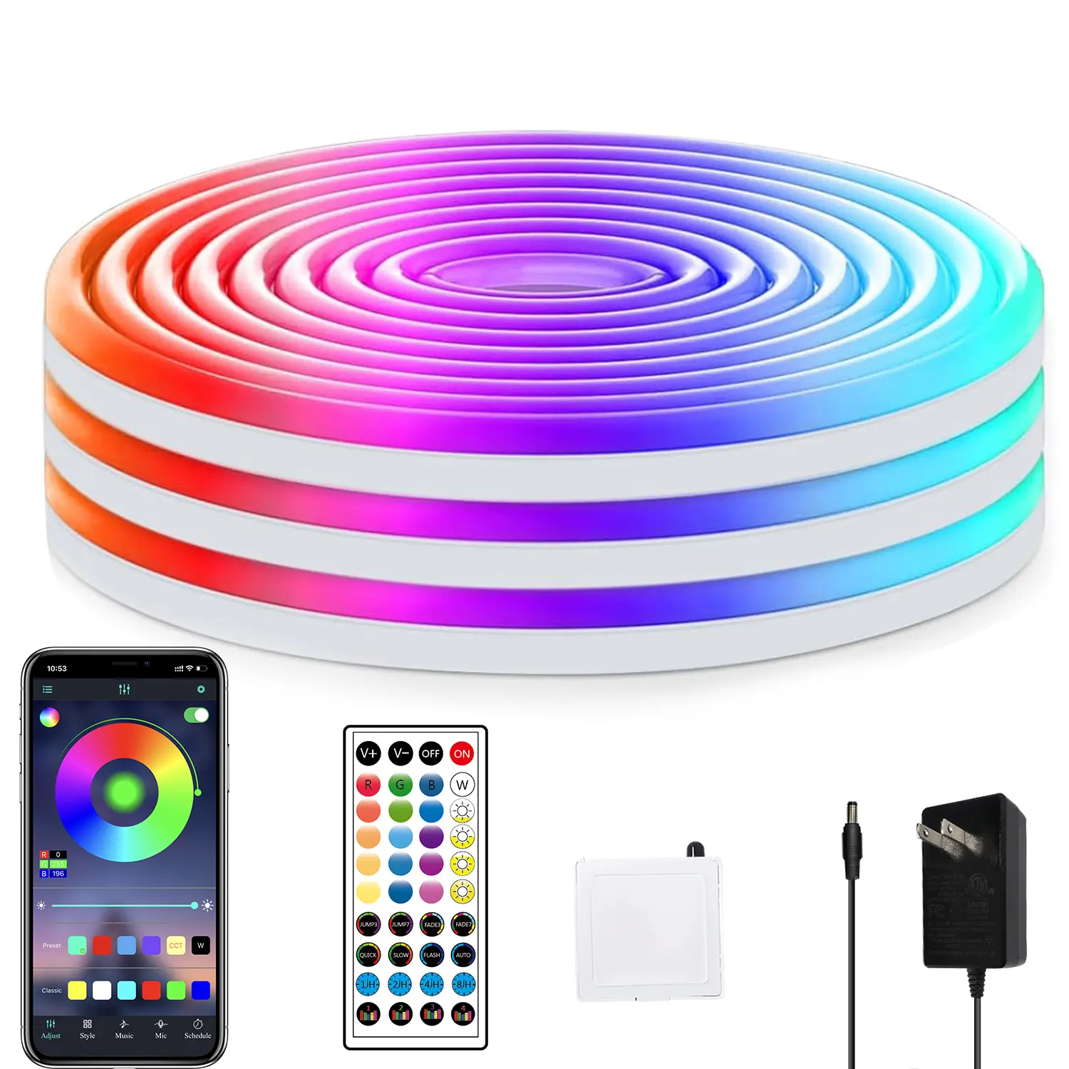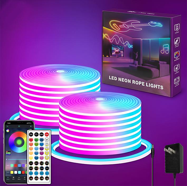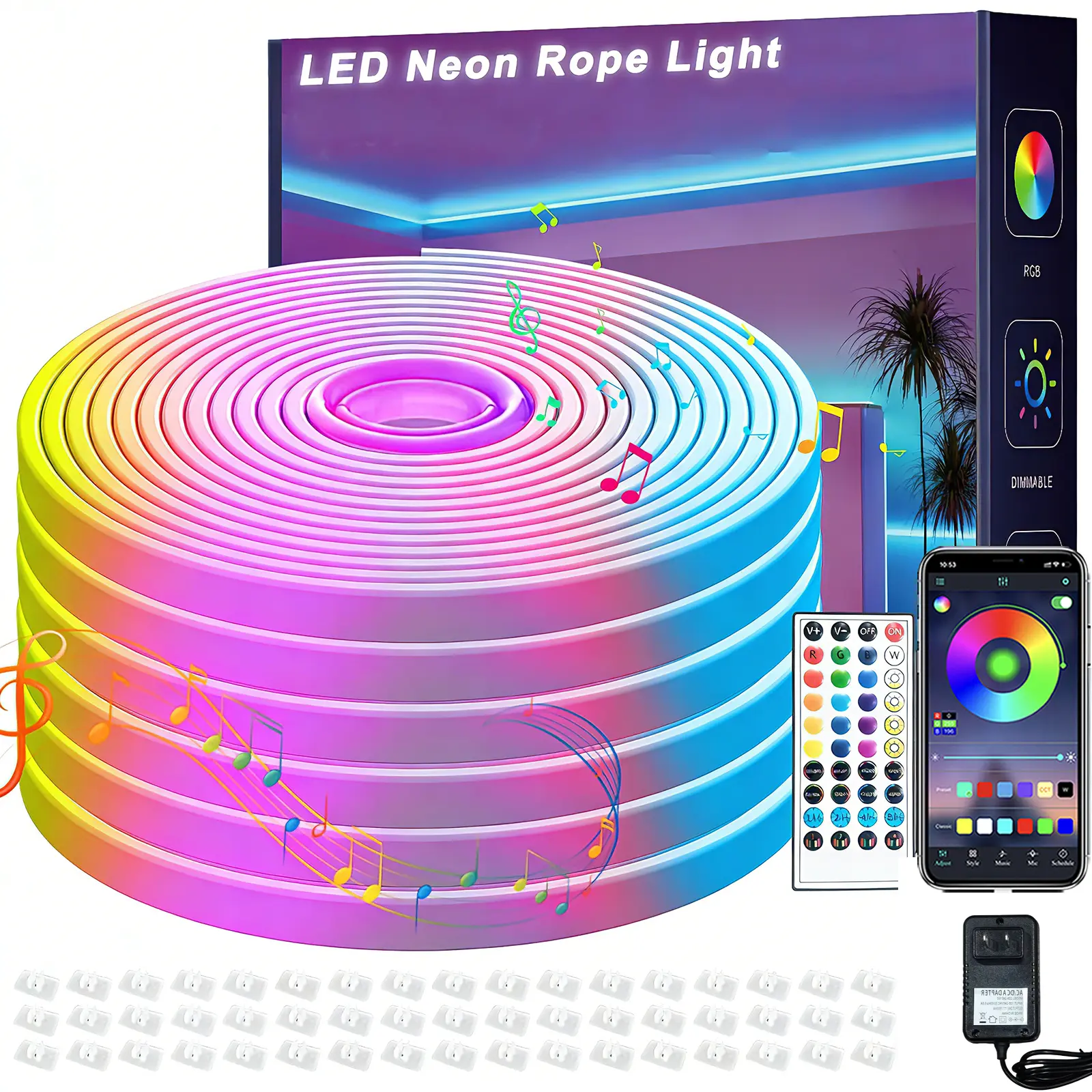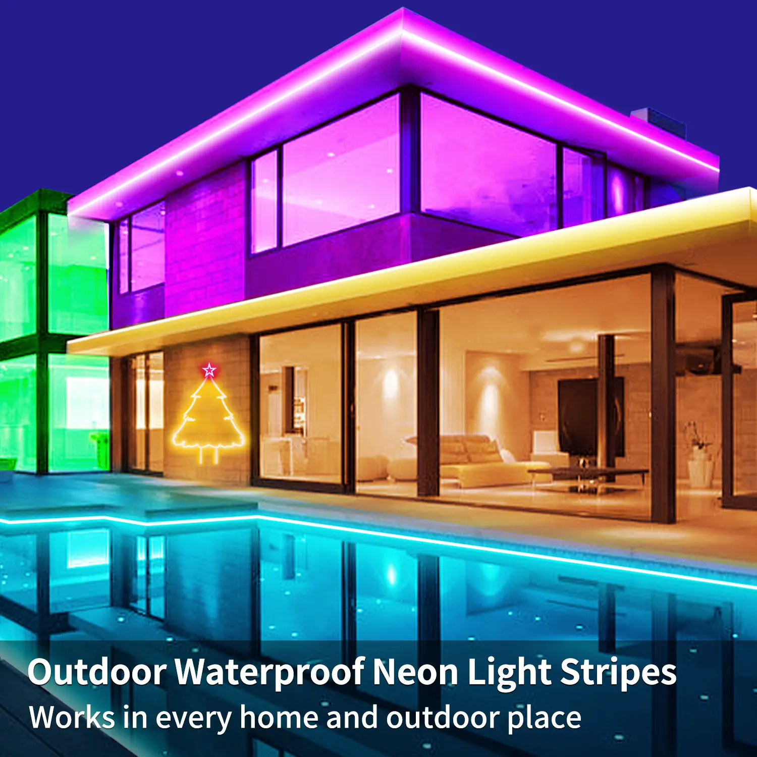 Experience the versatility and beauty of Rroetxi Neon LED Strip Lights, perfect for enhancing any space with colorful, music-synced lighting.