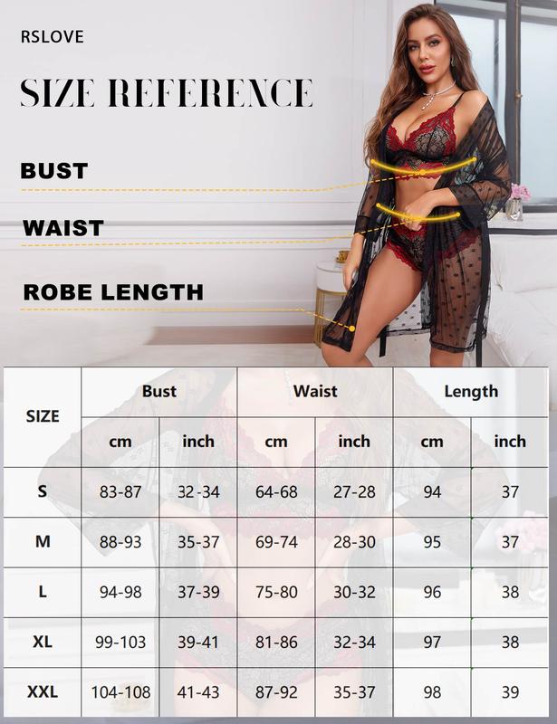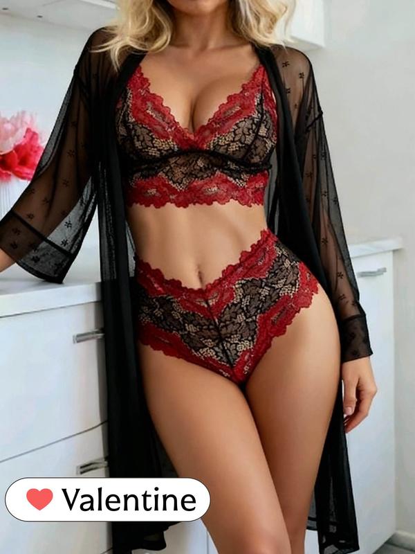 Package: 3-pack Floral Lace Lingerie Set With Mesh Robe Care: Hand wash cold recommended to keep the lace looking brand new!