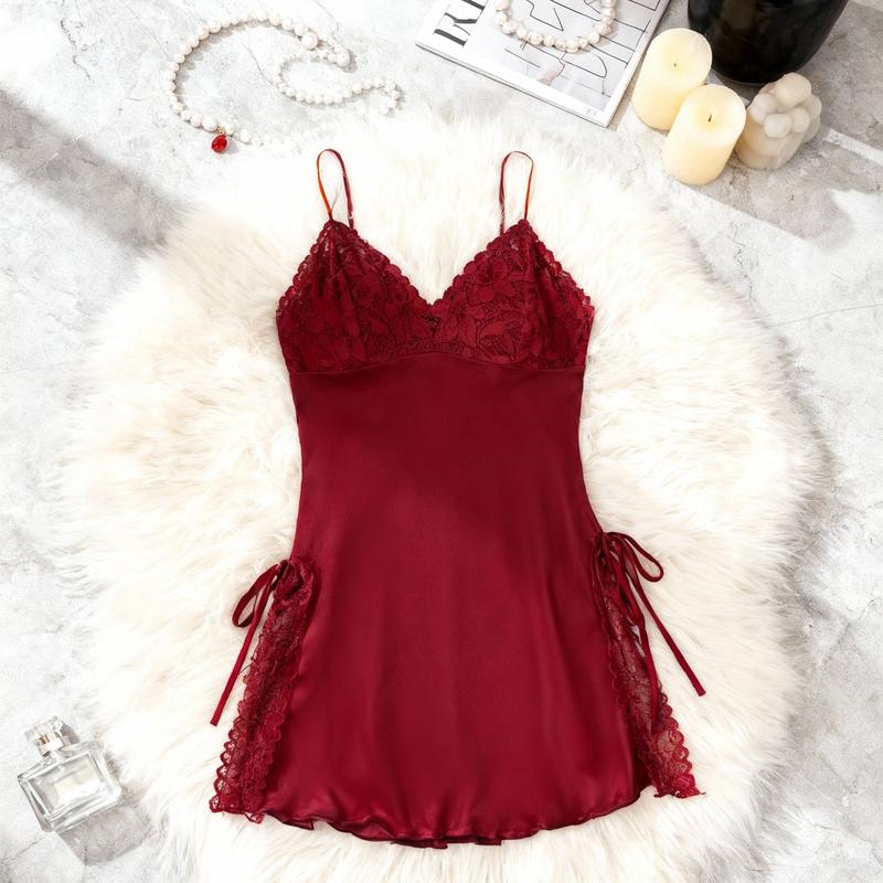 ·Sultry Side Slits: Features high-cut side slits with delicate lace trim and cute bow details—designed to make your legs look miles long.