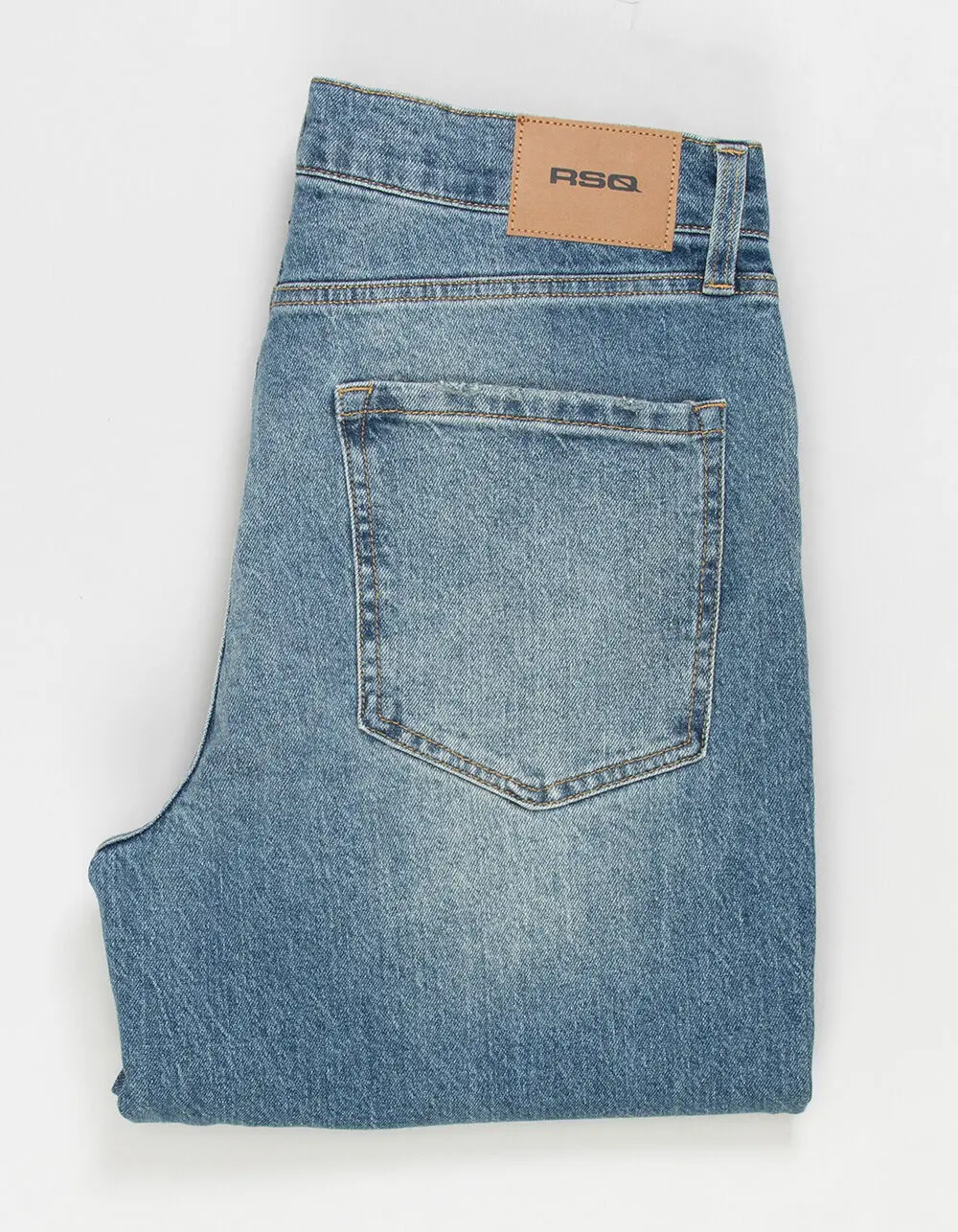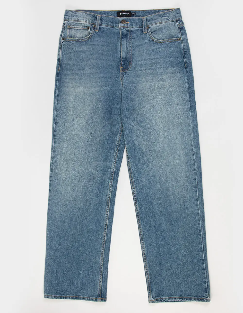 RSQ Loose Jeans. 5-pocket denim styling. Button closure with zip fly. Belt loop waist. Loose fit. Slight fraying at pockets. Loose fit. Approximate leg opening: 18in. 99% Cotton 1% Spandex. Machine wash. Imported.
