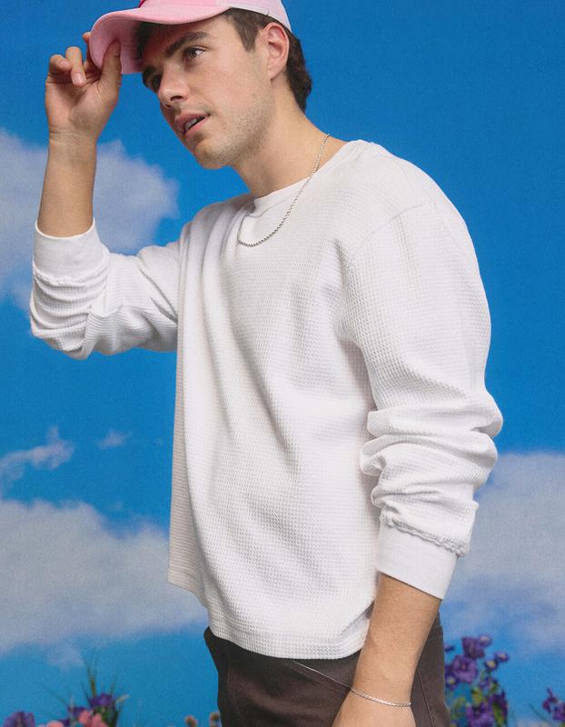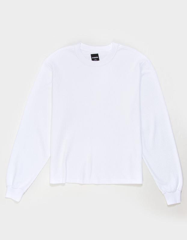 RSQ Washed Boxy Thermal. The RSQ Washed Boxy Thermal for men is a timeless essential designed for comfort, style, and versatility. Crafted from a soft waffle-knit fabric, this solid-color thermal delivers the perfect blend of warmth and breathability, making it ideal for layering or wearing on its own. The garment has been specially washed for a subtly worn, lived-in look that adds character without sacrificing durability. Boxy fit. 100% Cotton. Machine wash. Imported.