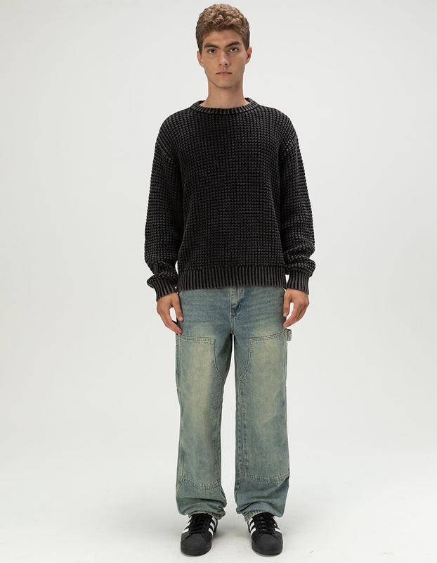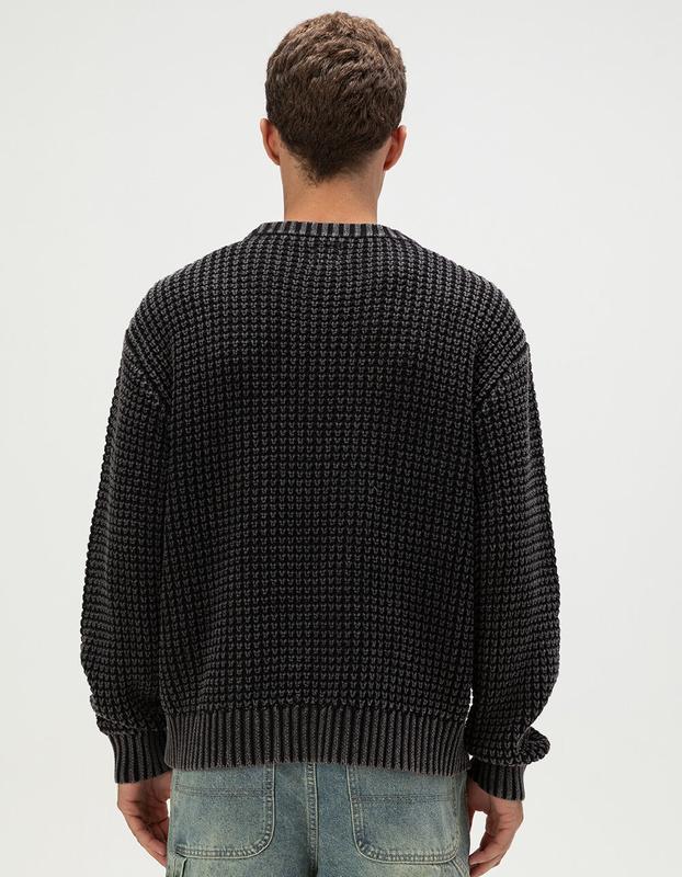 Love this sweater - 100% cotton, held up to at least one wash and still looks nice. Nice color and pattern. I’m a 5’ 4” girl and men’s large is of course oversized but I like a baggy fit.