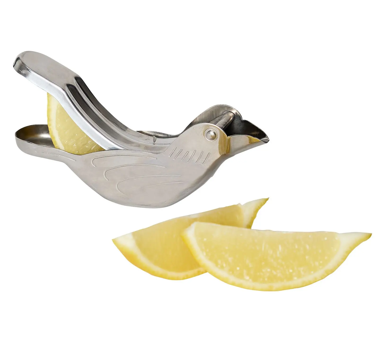 Infuse charm and convenience into your kitchen routine with this delightful citrus squeezer, shaped like a bird for a touch of whimsy. Imagine effortlessly squeezing fresh lemon or lime juice for your morning tea, weekend cocktails, or zesty salad dressings -- leaving seeds and pulp behind. Made from sturdy stainless steel, it's both durable and easy to use. Compact and easy to store, its a must-have for any citrus enthusiast. From RSVP.