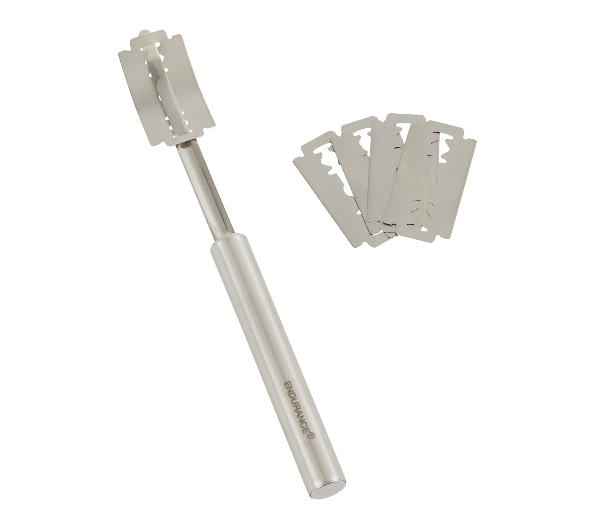From creating crisp, golden crusts to designing beautiful scoring patterns, this bread lame puts professional results in your hands during every baking session. Equipped with five ultra-sharp blades and a leather cover, this kitchen tool offers safety and versatility while giving home bakers the confidence to craft loaf after loaf of artisan bread. From RSVP.