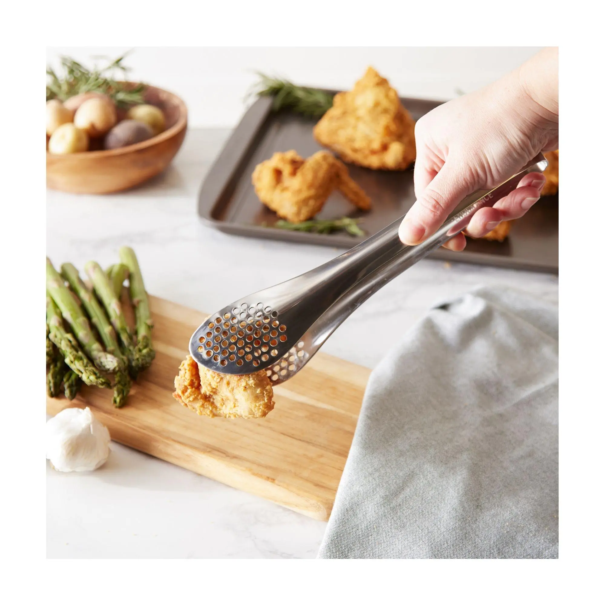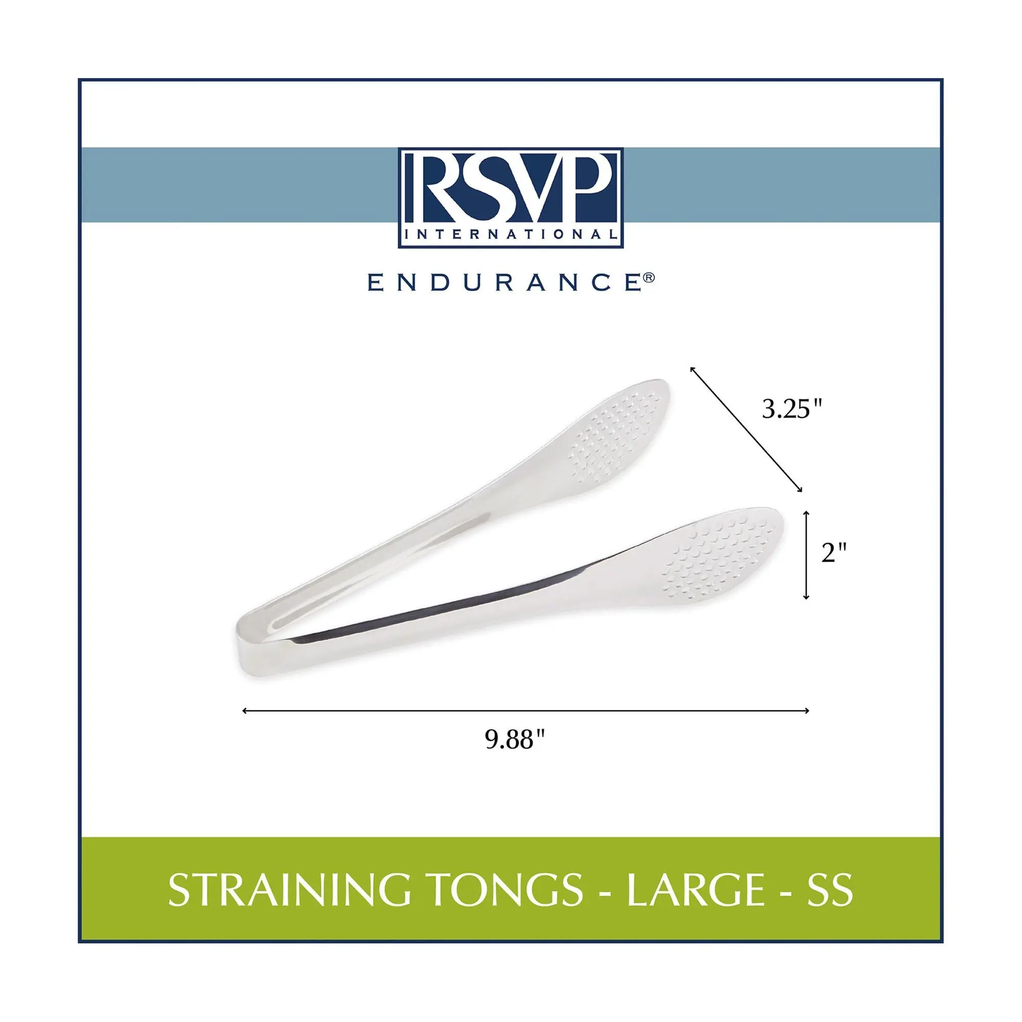 Whether flipping bacon or retrieving food from a simmering pot, your kitchen routine just got smoother. These stainless steel straining tongs make it seamless to strain and toss delicate ingredients. With their secure grip and slotted design, you can move ingredients from pan to plate using just one hand, allowing you to multitask effortlessly in a busy kitchen. From RSVP.