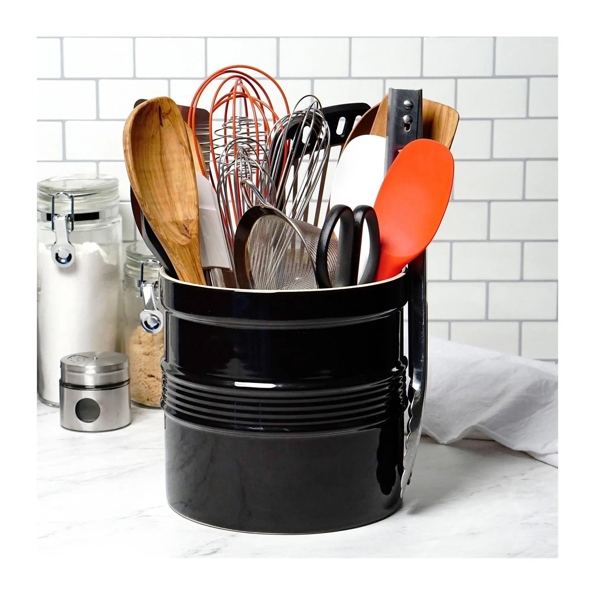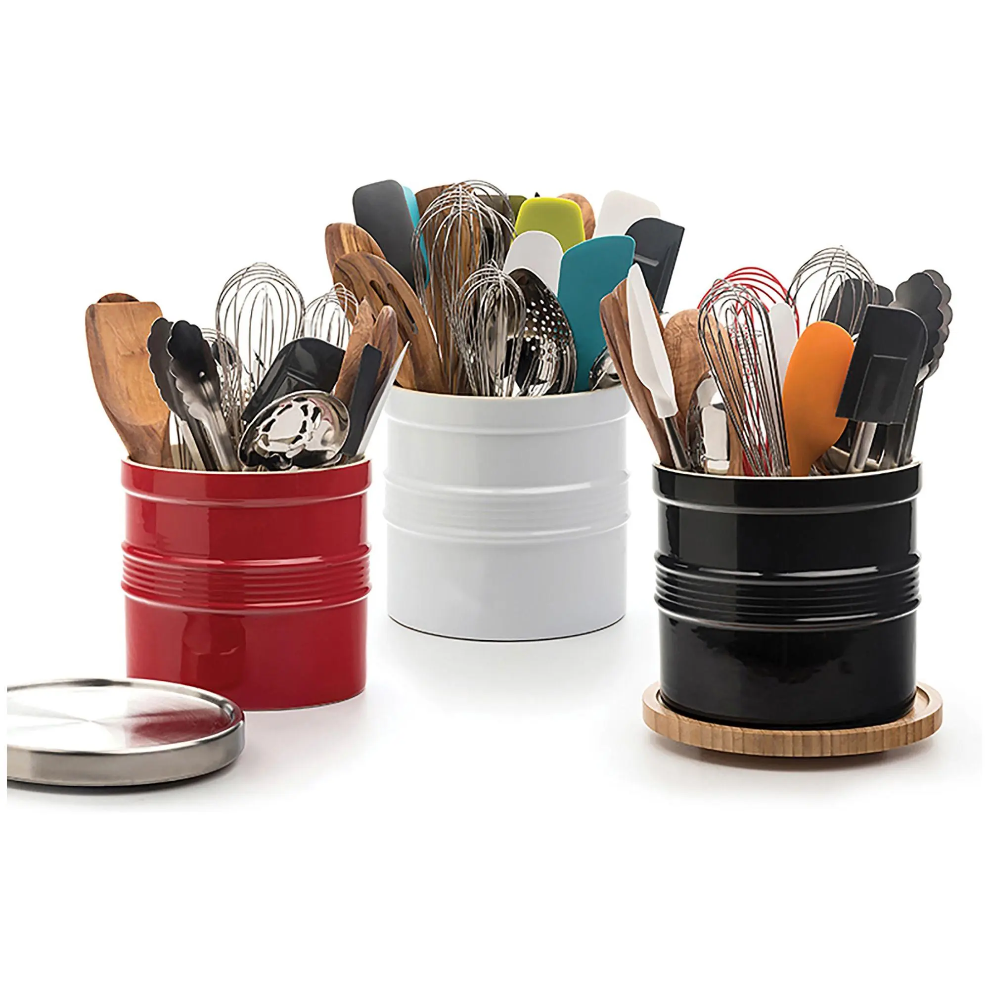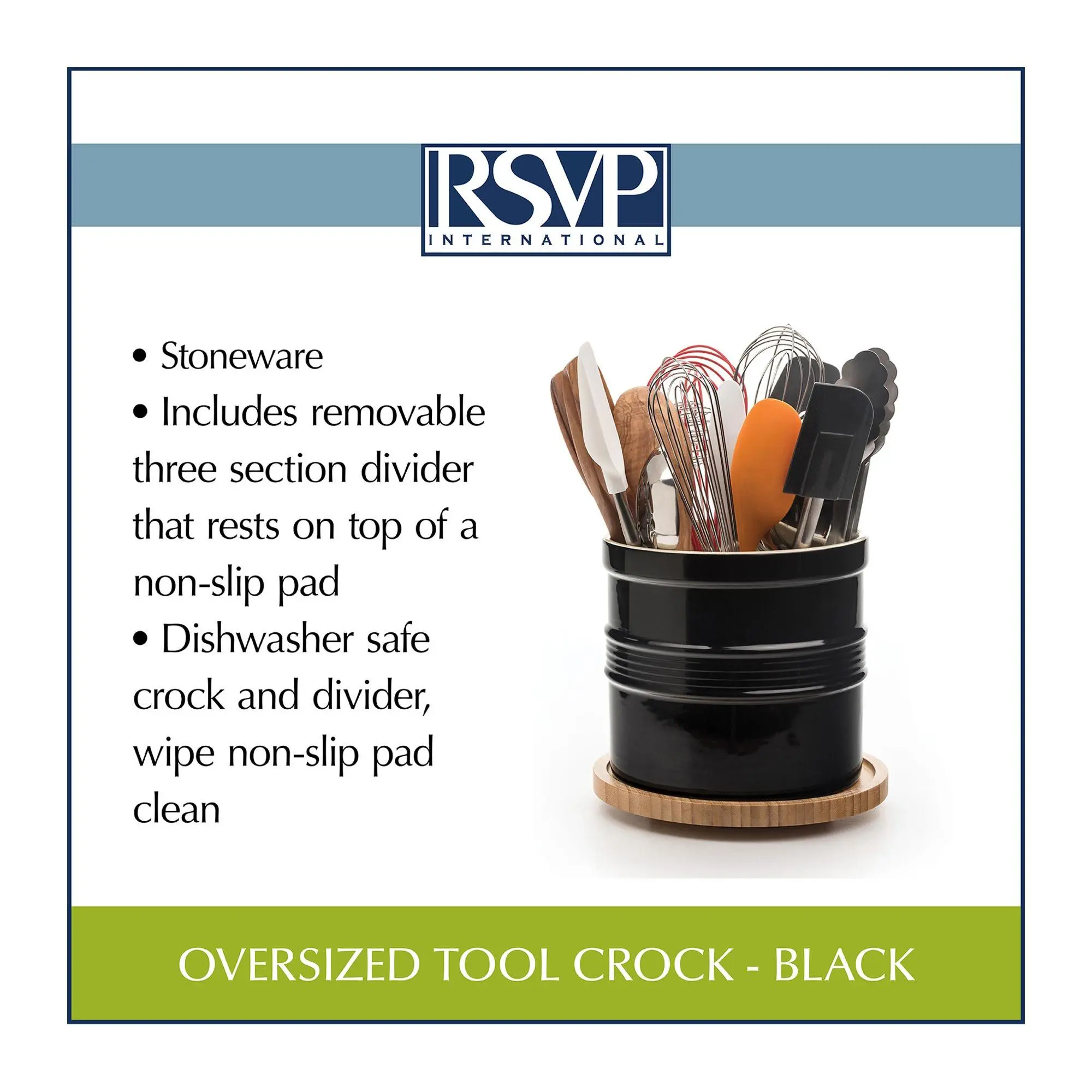 Keep every tool in the kitchen conveniently accessible in this generously sized tool crock, featuring a removable three-section divider to keep utensils upright and organized. From RSVP.