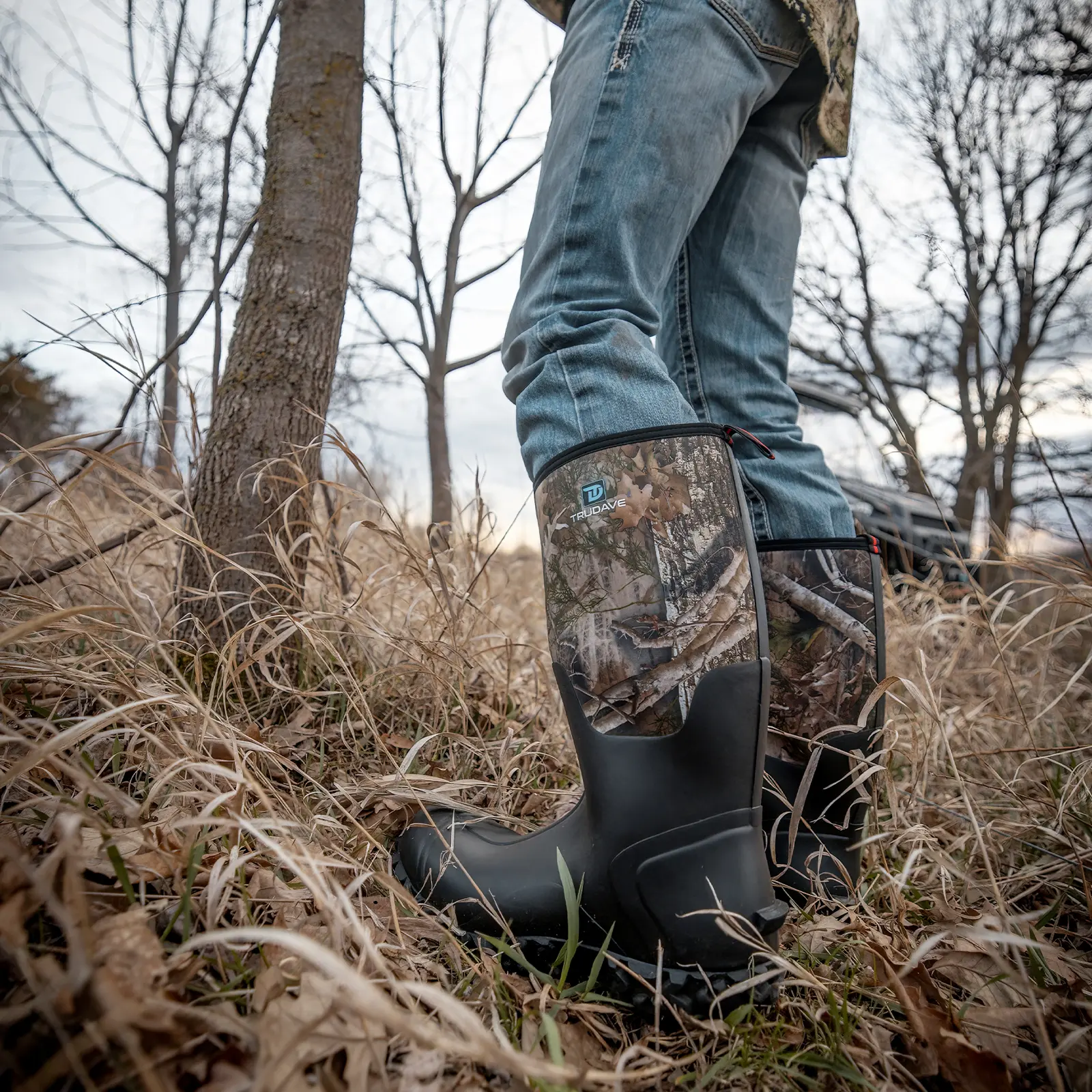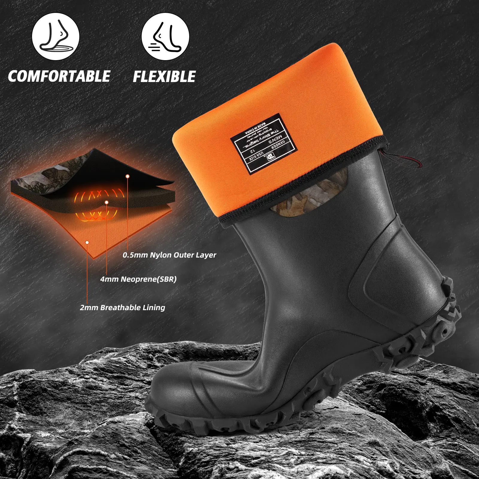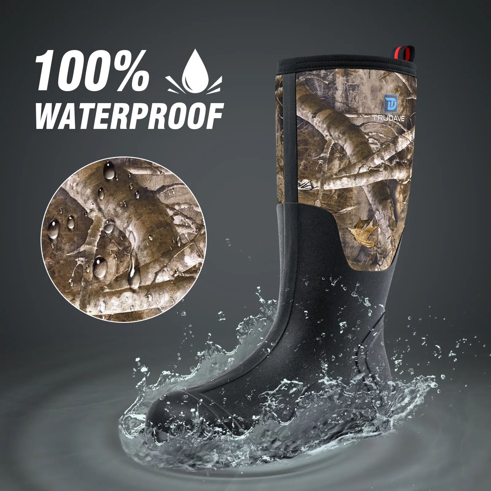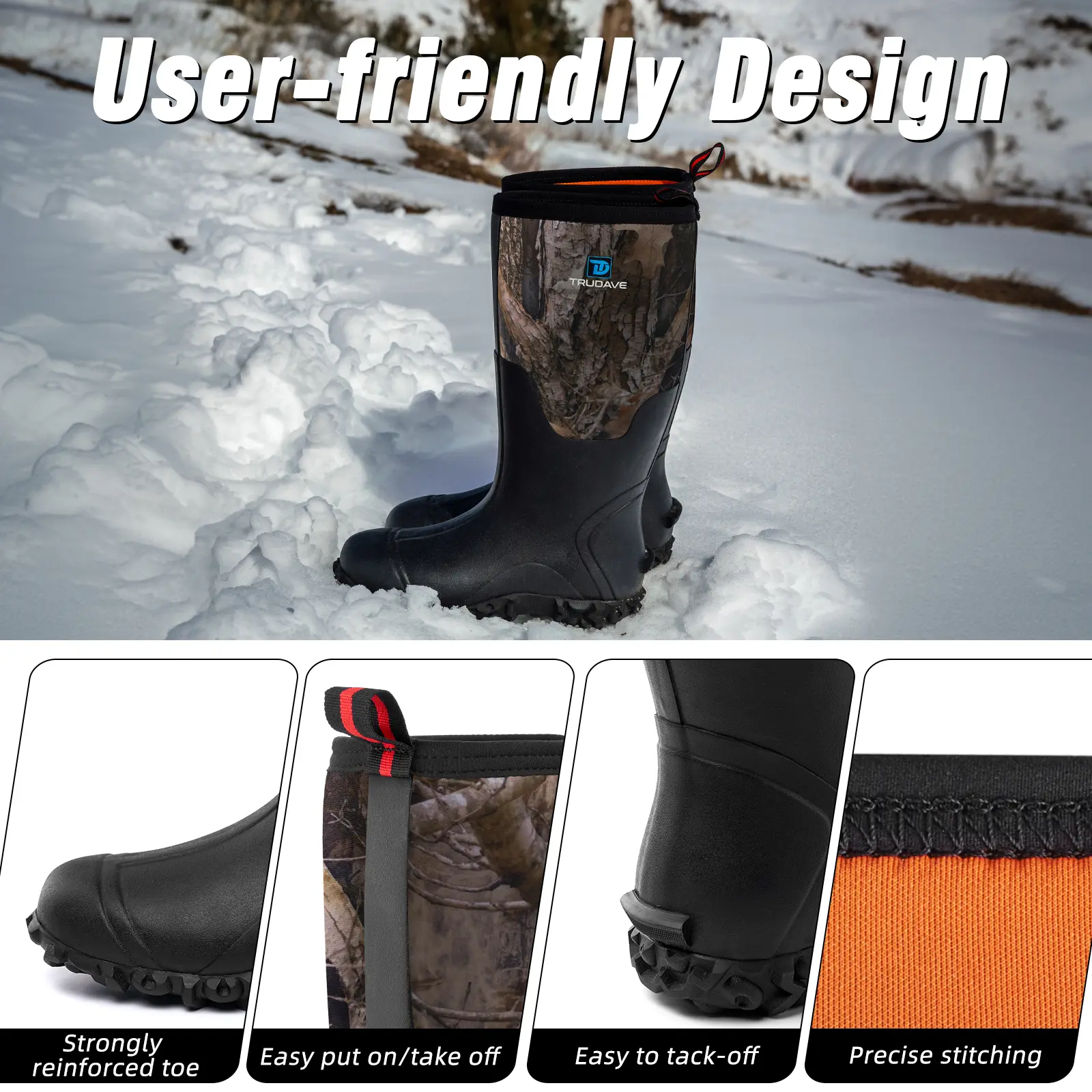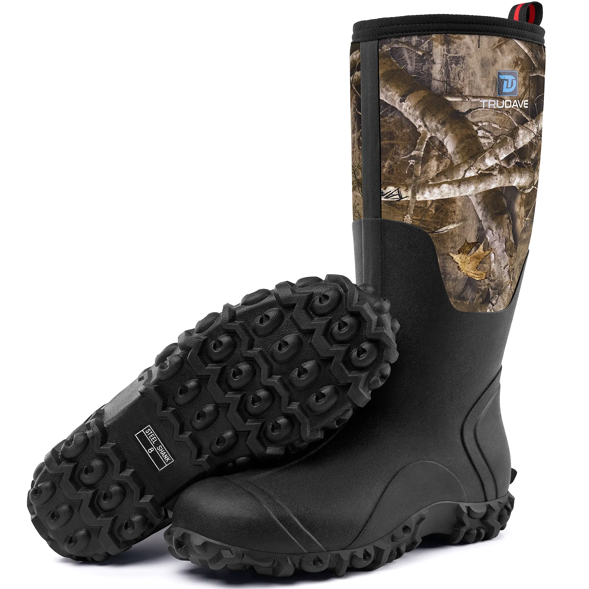 【Waterproof & Anti-Slip】TRUDAVE rubber boots are made of 100% waterproof rubber and neoprene materials, keeping feet dry and comfortable during work. TRUDAVE rain boots with deep tread rubber sole for strong grip and easy control over any terrain.