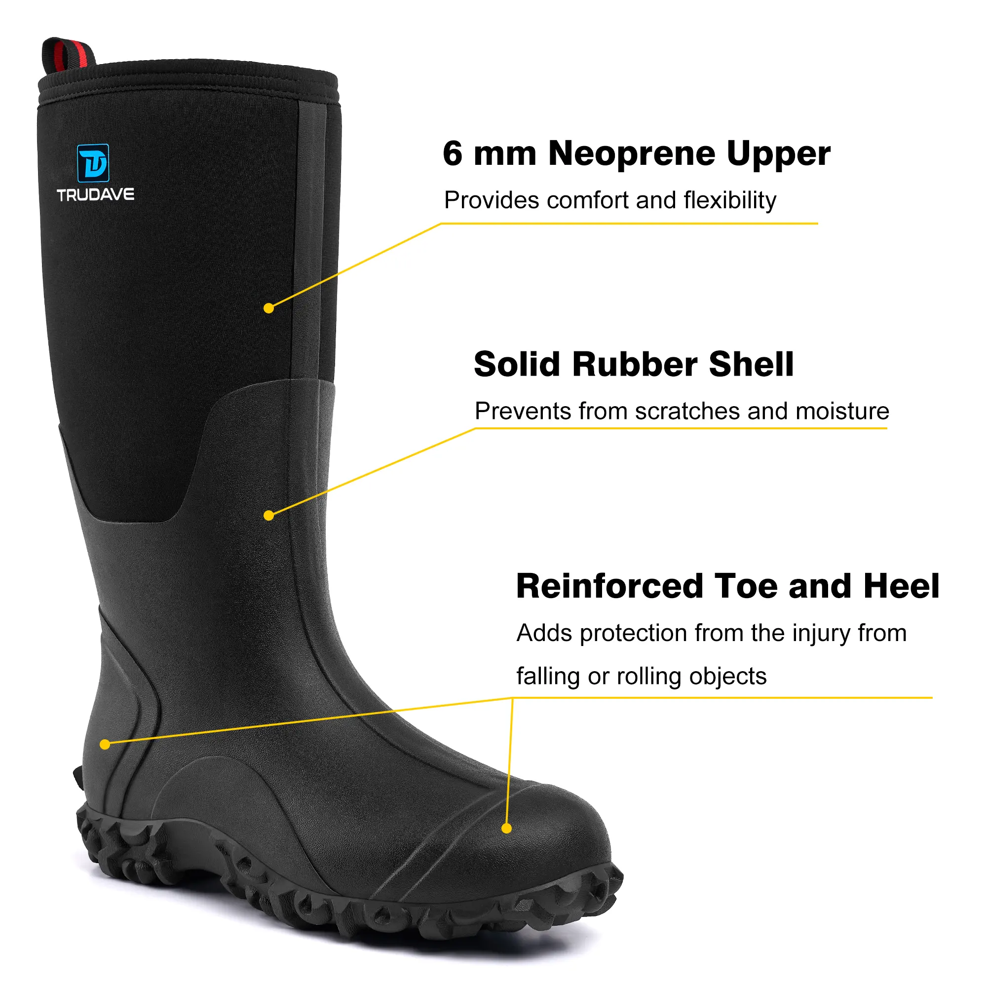 Β·The boots are crafted from 100% waterproof rubber and neoprene. They ensure your feet stay dry and comfortable during work. The deep tread rubber sole provides a strong grip and easy control over any terrain. Perfect for industrial settings, these boots keep you dry and secure.