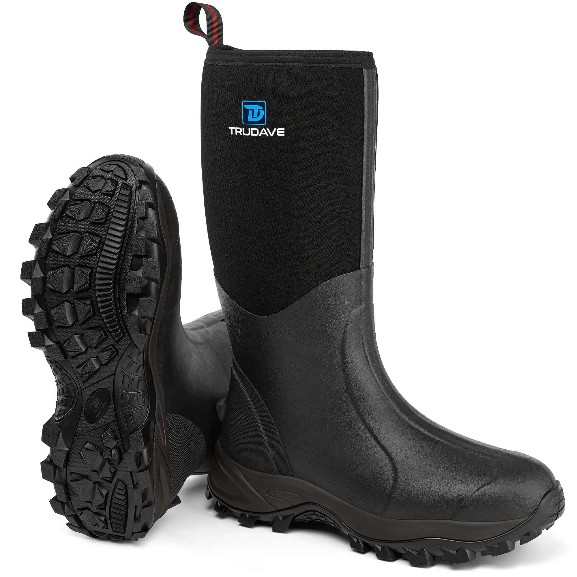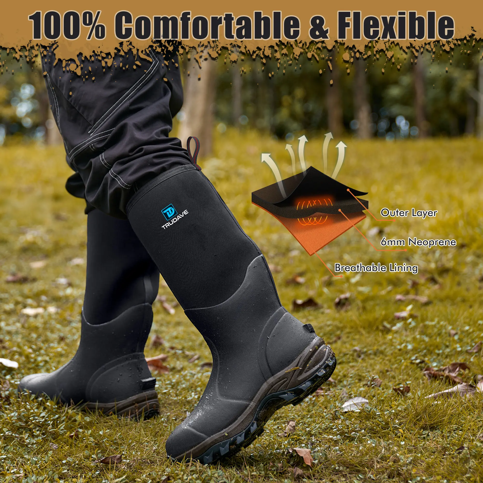 ·【100% Waterproof & Insulated】Trudave men's winter boots, made with 6mm neoprene upper and rubber material, gives you comfort and flexibility, heat-resistant insulation prevents radiated body heat from escaping, keeps your feet dry and warm.