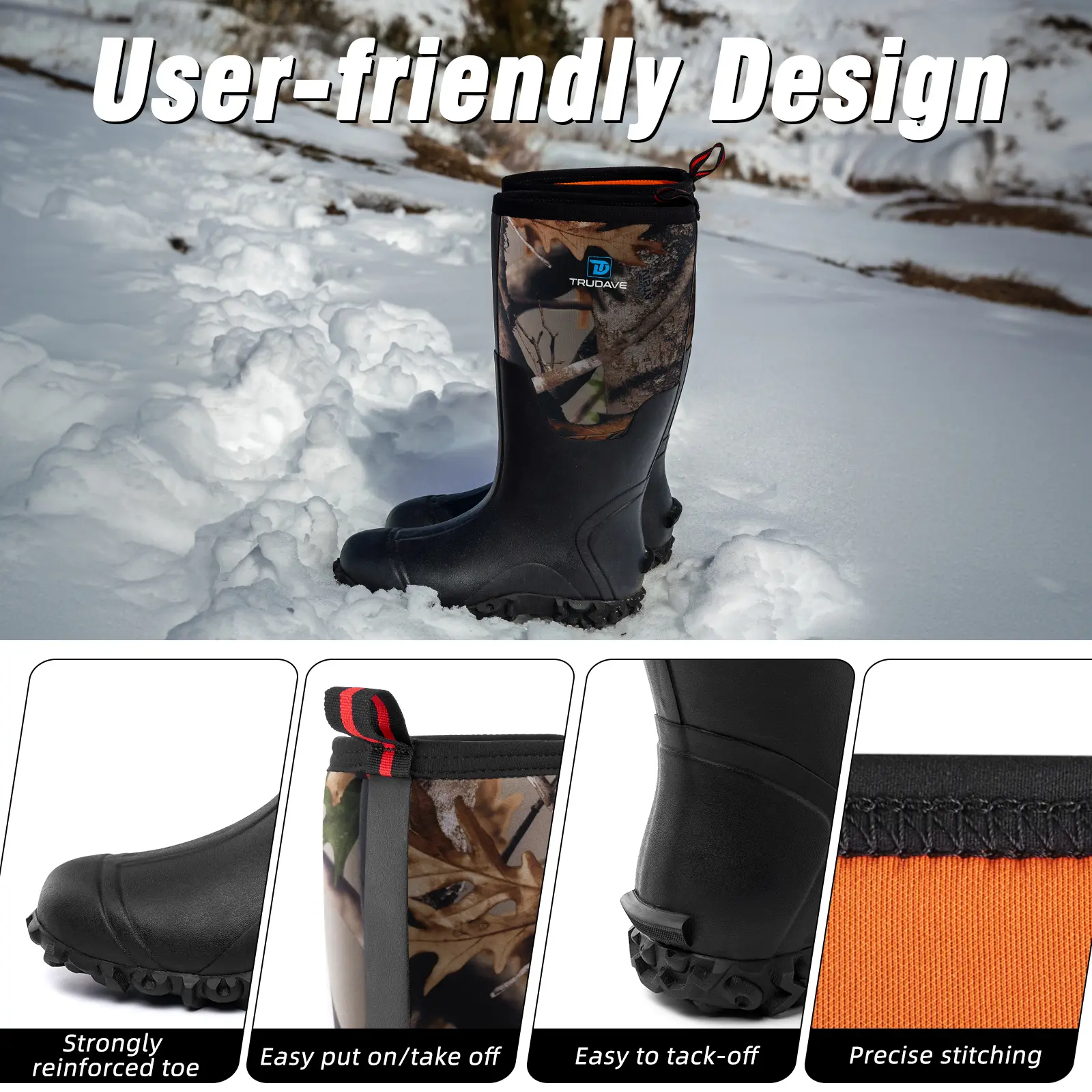 【Flexible & Reliable】By using higher quality raw materials and advanced pressurization technology, Trudave rubber boots are made stronger and more Reliable. Whether on farms, fields, hunting, or industrial manufacturing, they can perfectly match.
