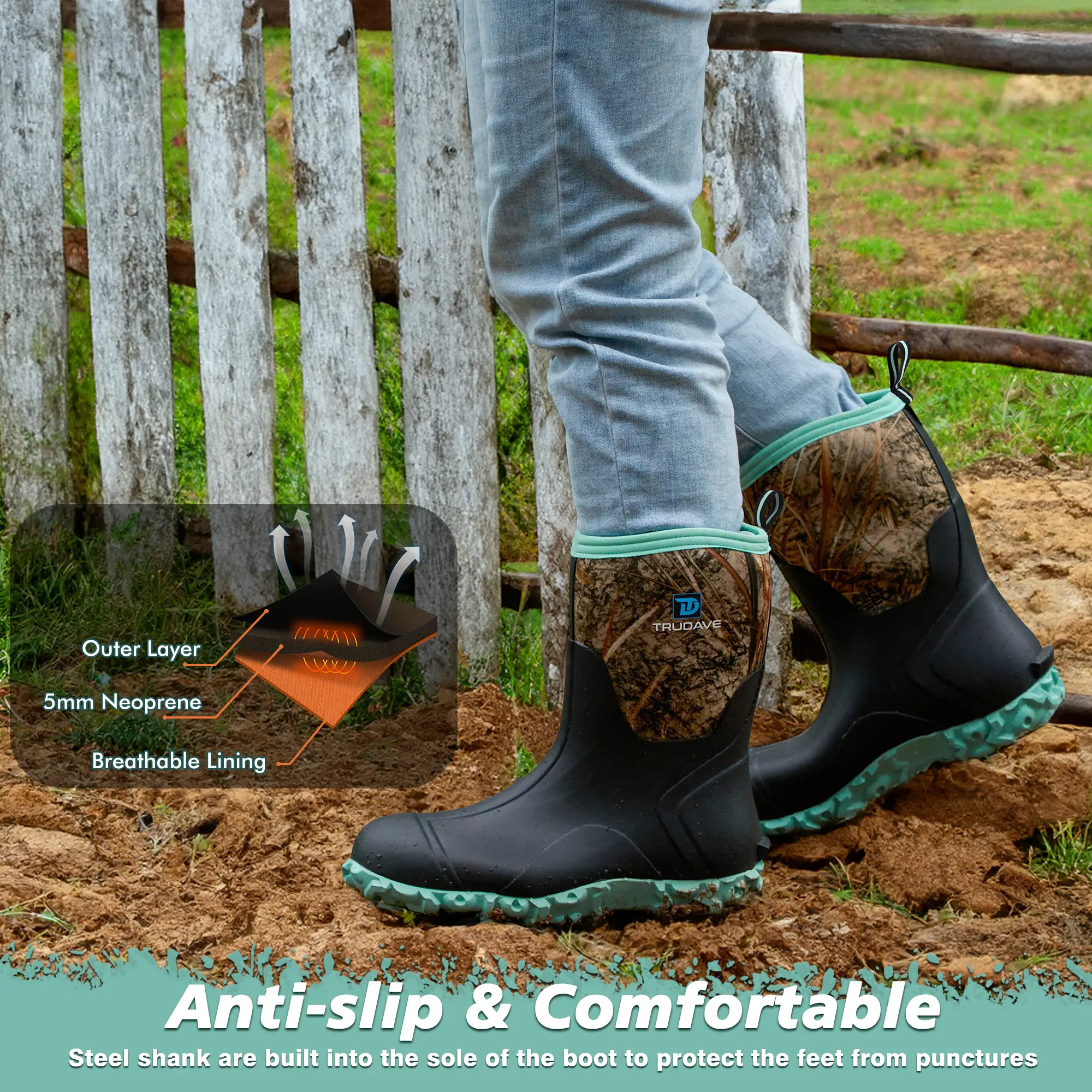 Drycode mud boots are perfect for any season. Whether you're working, hunting, fishing, camping, or playing in the rain, these boots keep your feet warm and comfortable. The 6mm rubber construction ensures protection from liquids and sharp objects. Stay dry and comfortable all day long with these versatile boots.