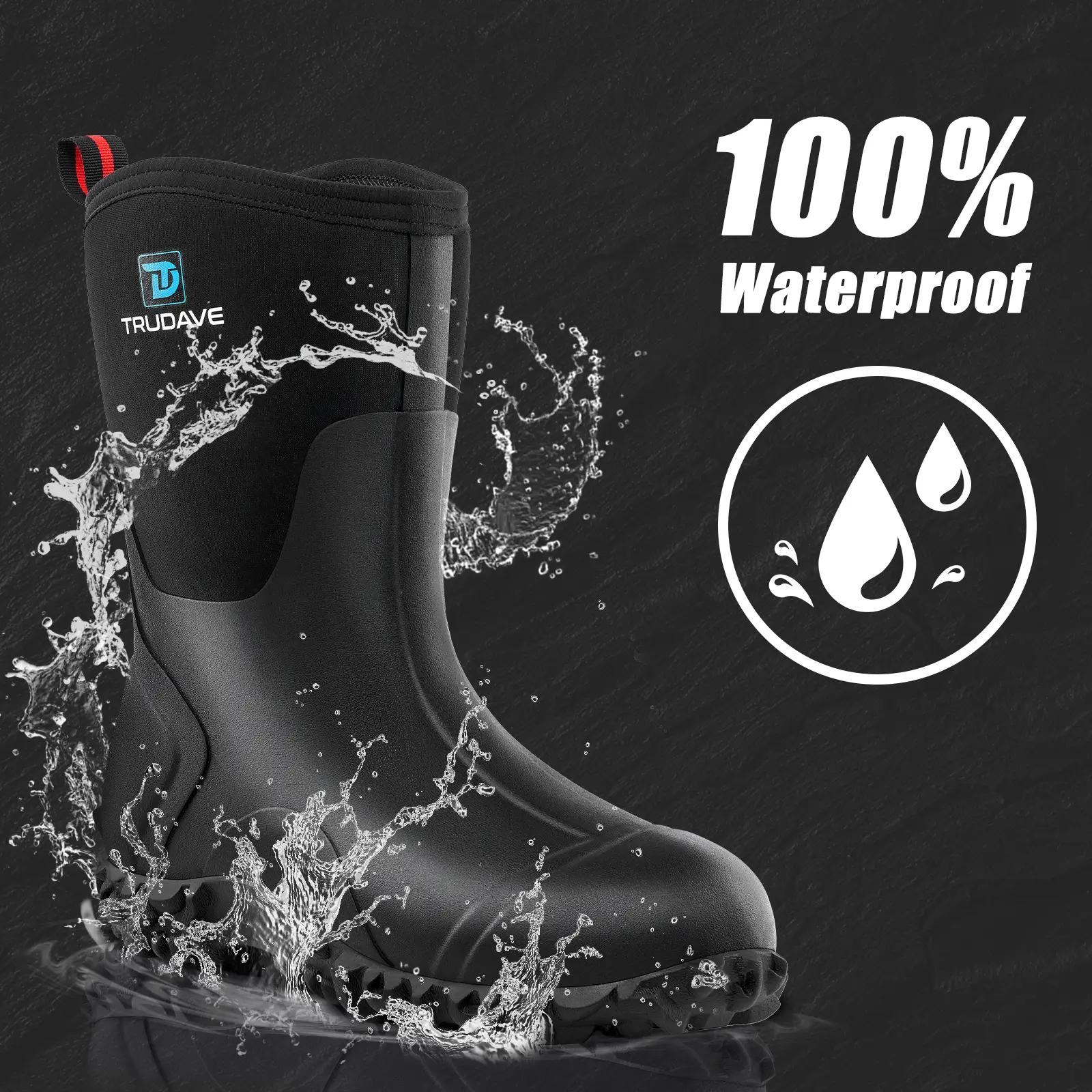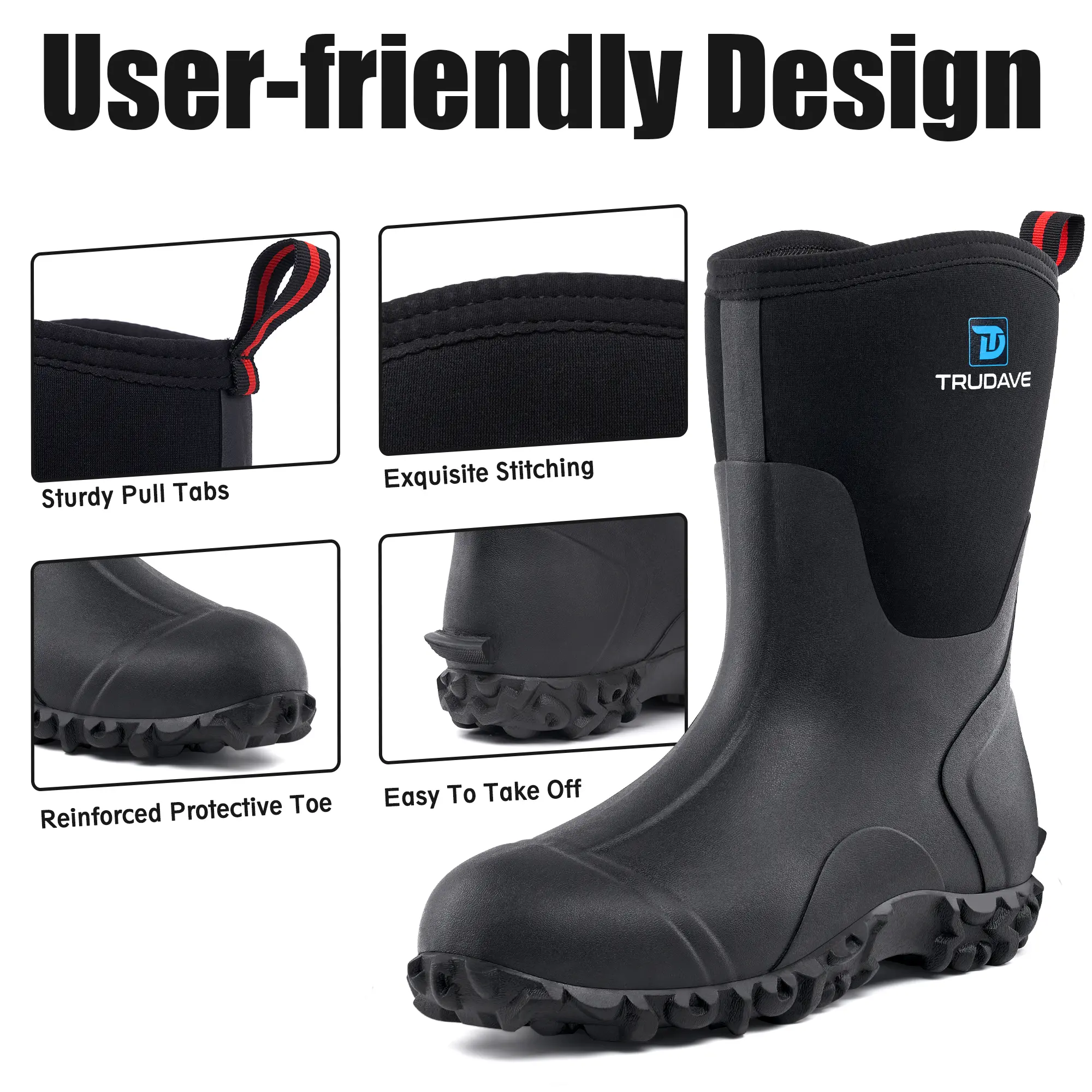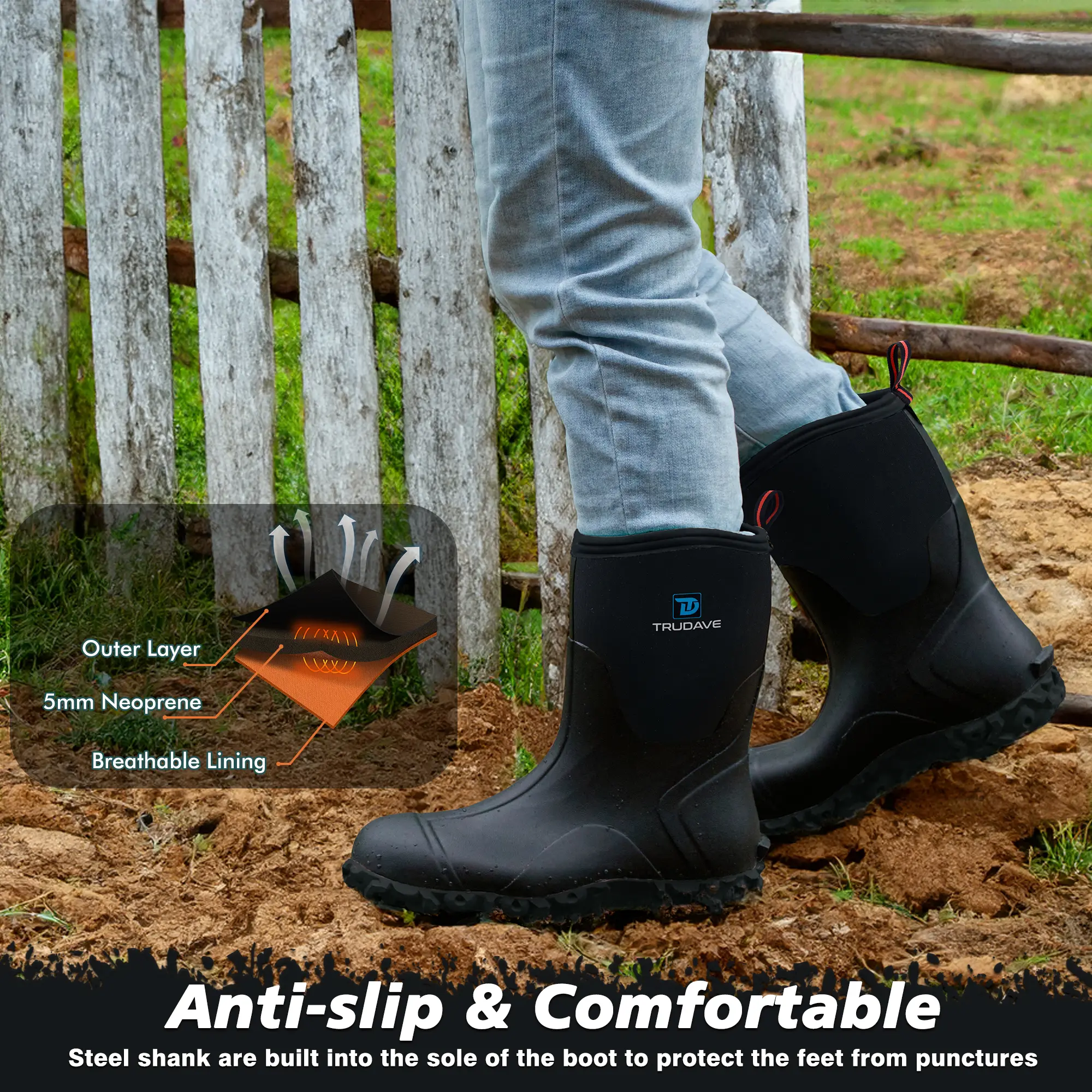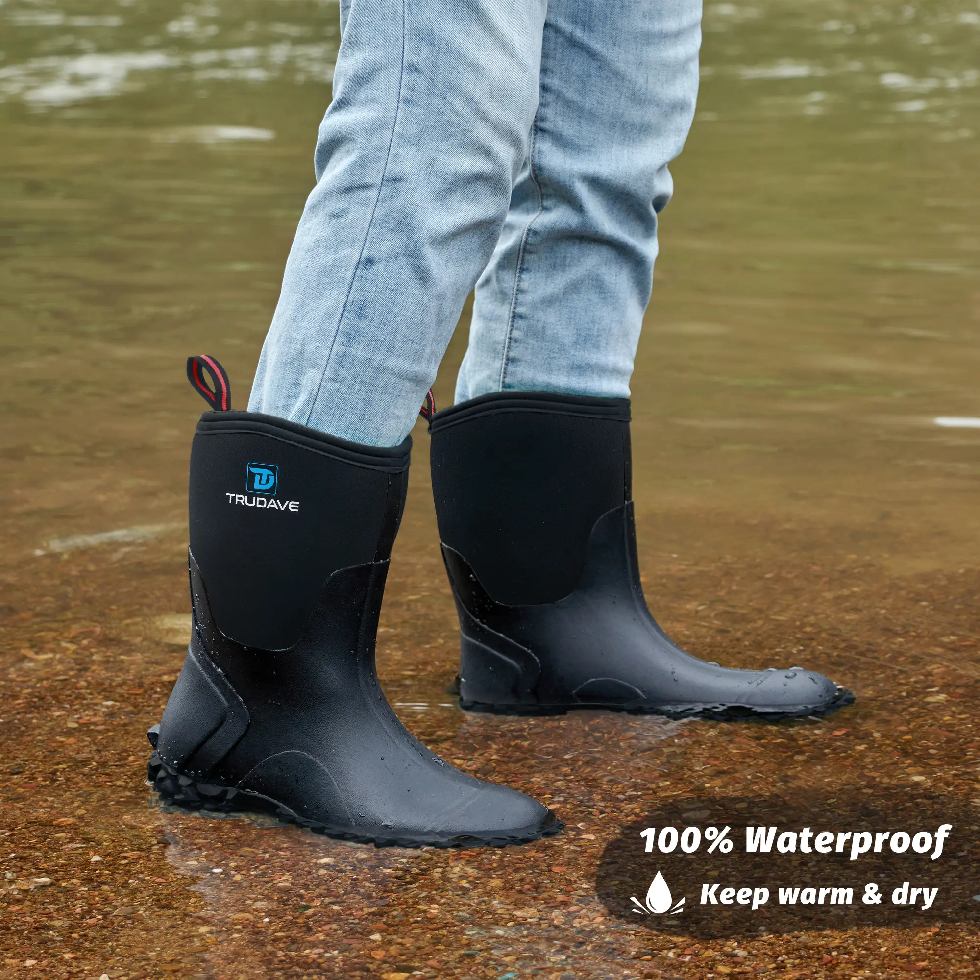 【Fits All Season】 Trudave mud boots are versatile for all seasons, whether you're working, hunting, fishing, camping, or even playing in the rain, TRUDAVE rain boots will keep your feet warm and comfortable all day long. Comfort:(-4°F ~68°F)to(-20°C ~20°C).