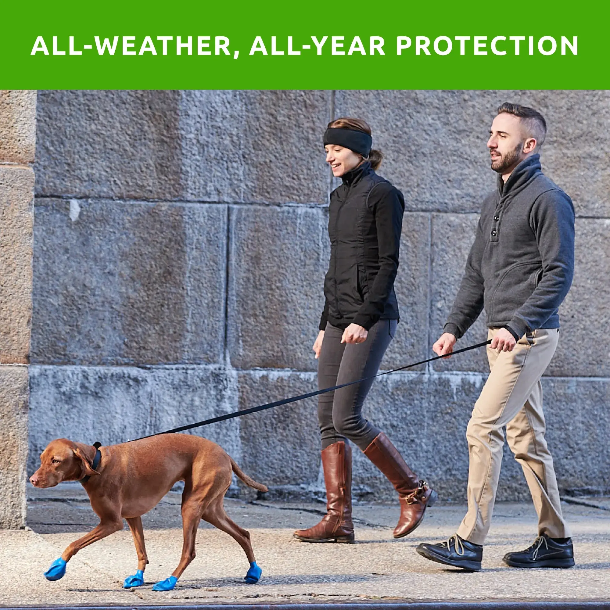 If your dog has sensitive paws and needs protection for a walk, run, or to chase a ball then these are the real deal. Our dog would get bloody pads from the snow and ice and this did the trick! They are way better than the Velcro boots as they stay on and are easy for your pup to run or walk with them on. I will say they are hard to get on the dog paws but that’s why they stay on! They are reusable but they will get a few holes in them after many uses…mostly from the nails of the dog, but I actually put a small piece of duct tape over the small hole and that did the trick. I highly recommend this product for temporary dog paw issues.