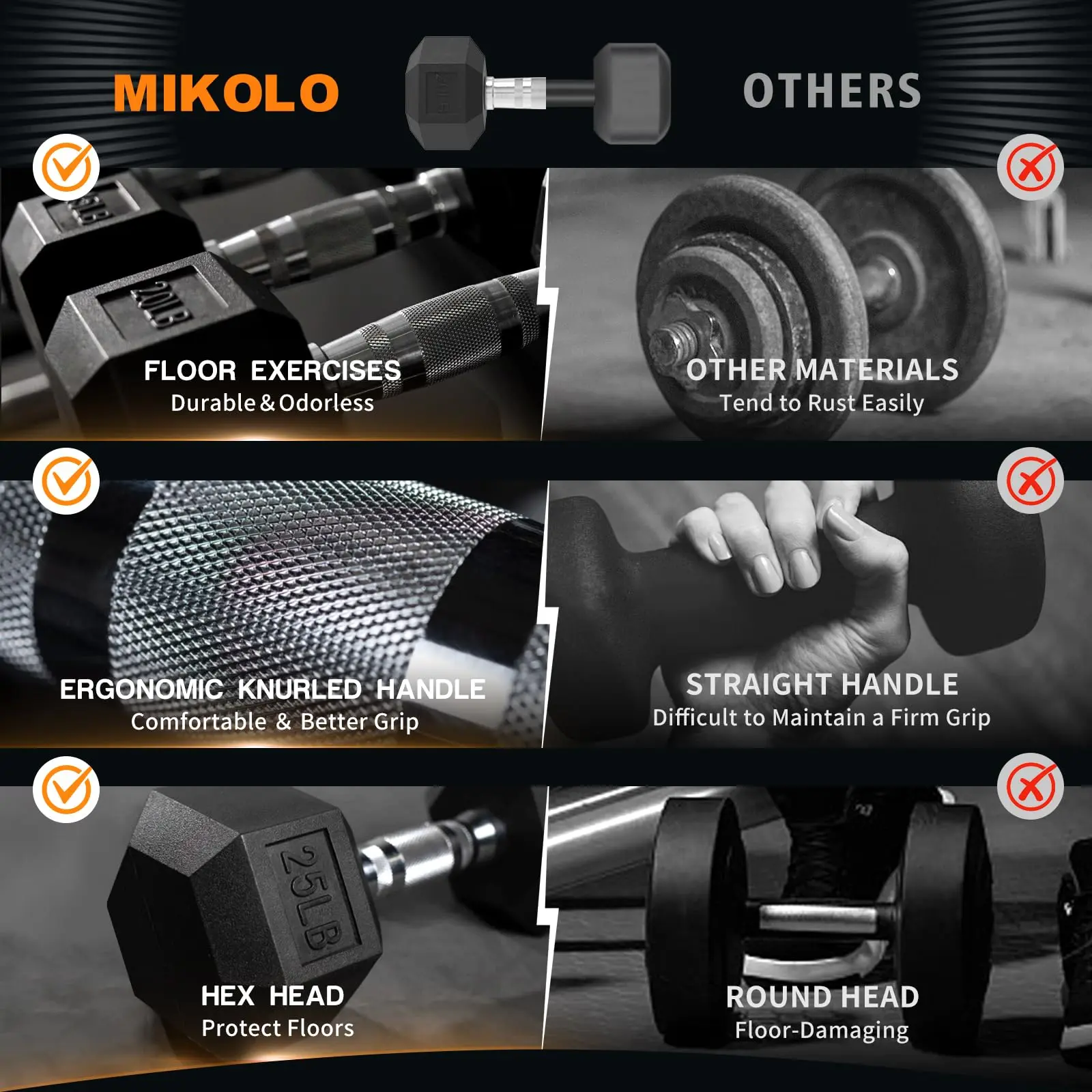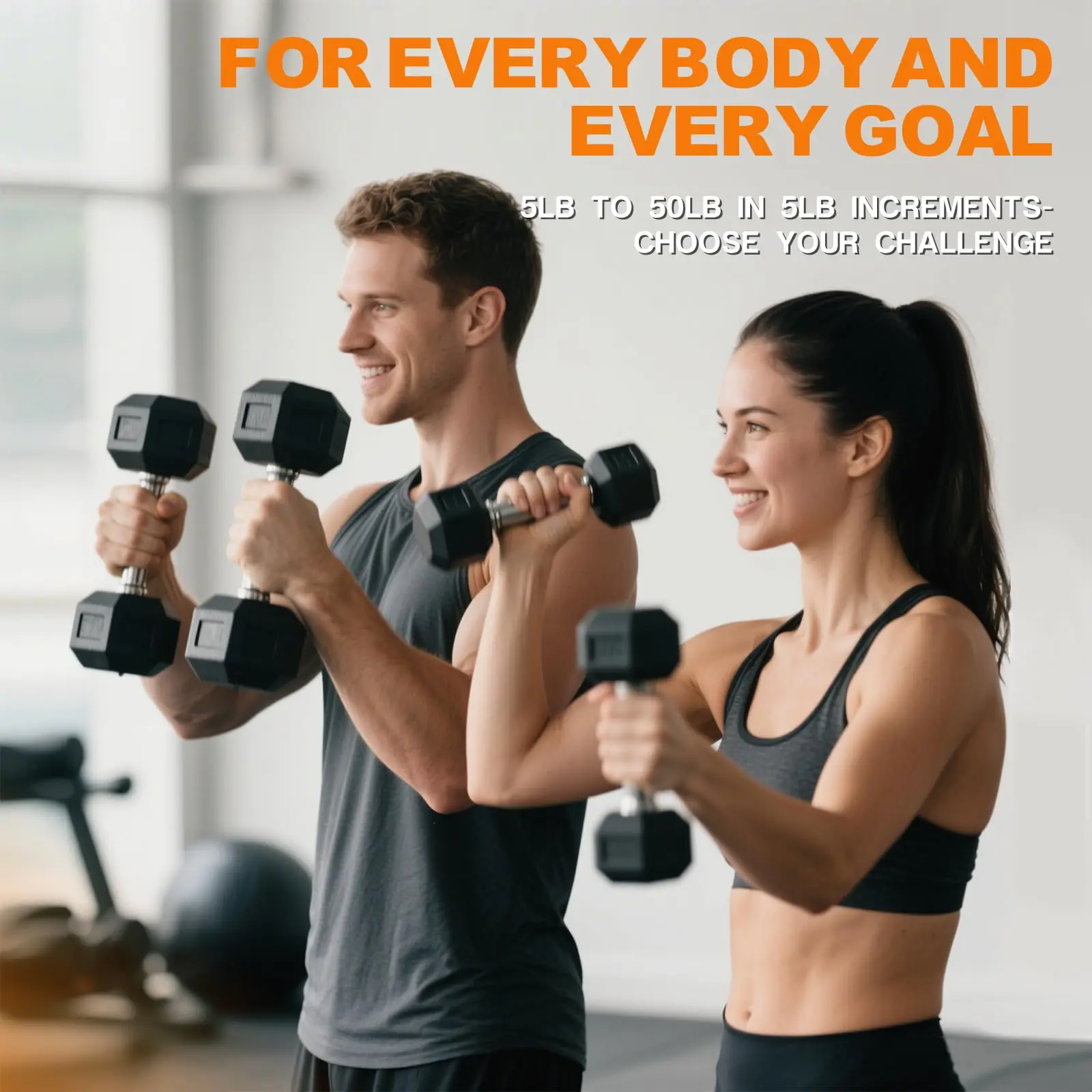 ·[Rubber Hex Design] Solid cast dumbbells with rubber-encased hex heads prevent rolling, protect floors, resist rust, and ensure years of reliable performance.