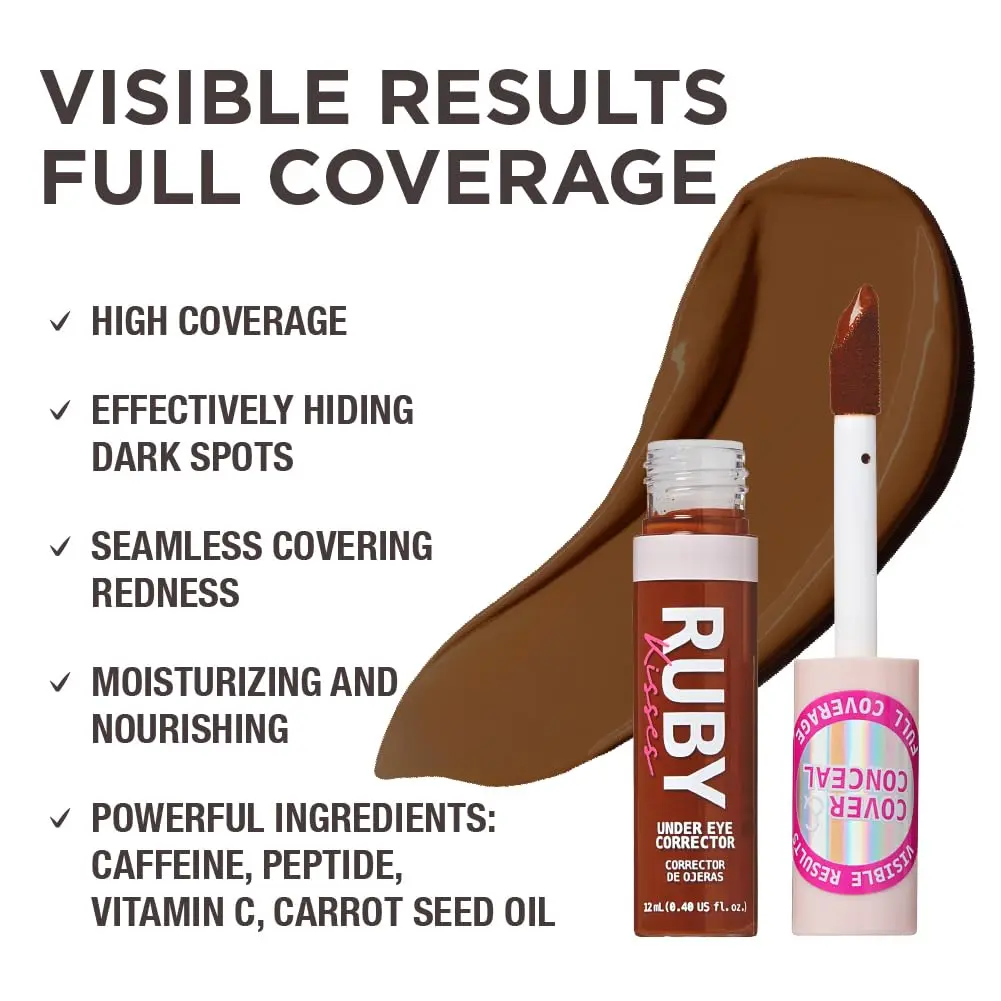 Ruby Kisses Under Eye Concealer, Full Coverage Makeup for Dark Circles, Redness, Hyperpigmentation, Blemishes, Moisturizing Satin Finish Formula With Caffeine & Peptides (420 Chestnut, 0.40 Fl Oz)