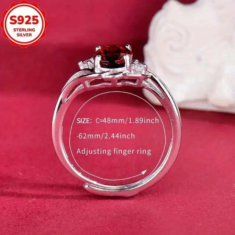 Luxurious ruby ring, elegant 925 sterling silver women's ring, adjustable opening ring size - perfect for mothers or couples, Christmas, Mother's Day gifts