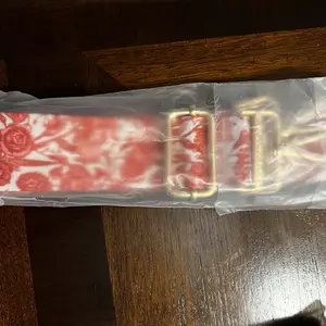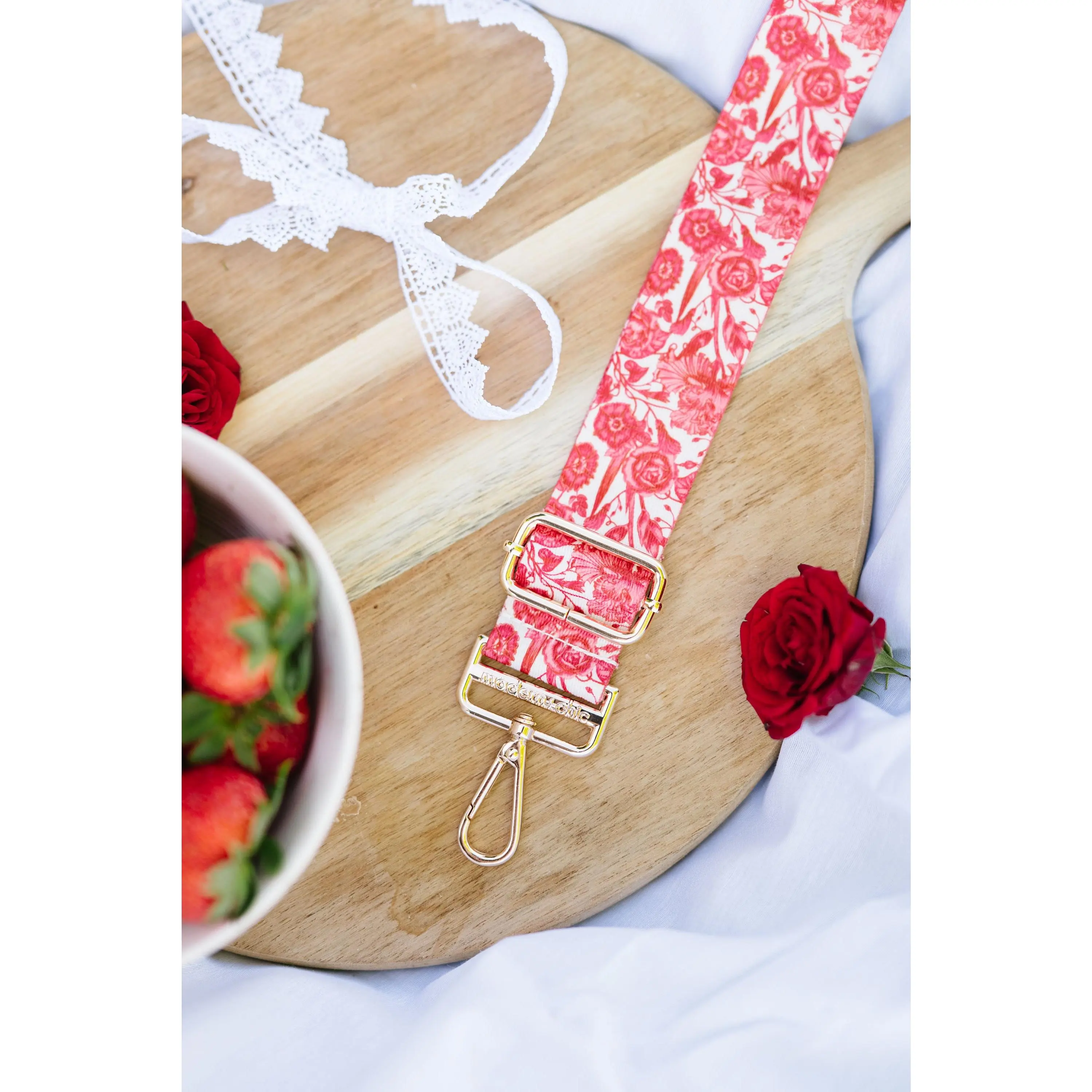 5. Ruby Rose Strap - Adjustable Polyester Strap with Gold Hardware & Custom Printed Red Roses Design 1 1/2" Wide
