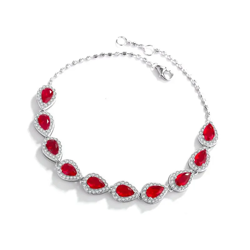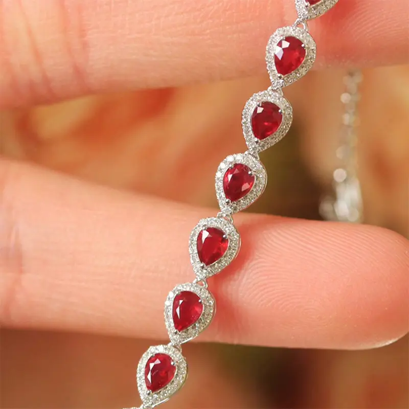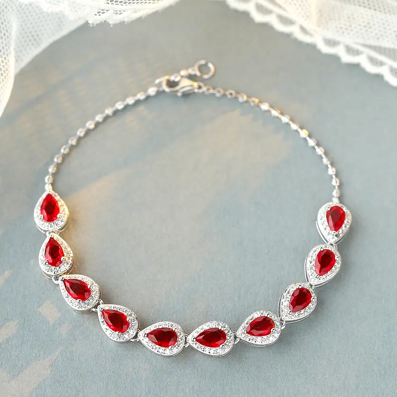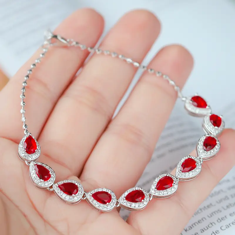 M️om's Gift!S925 Sterling Silver Teardrop Ruby Bracelet - Handcrafted Elegance for the Special Woman in Your Life. The Ultimate Christmas Gift That Whispers 'Forever'. #TimelessLuxury