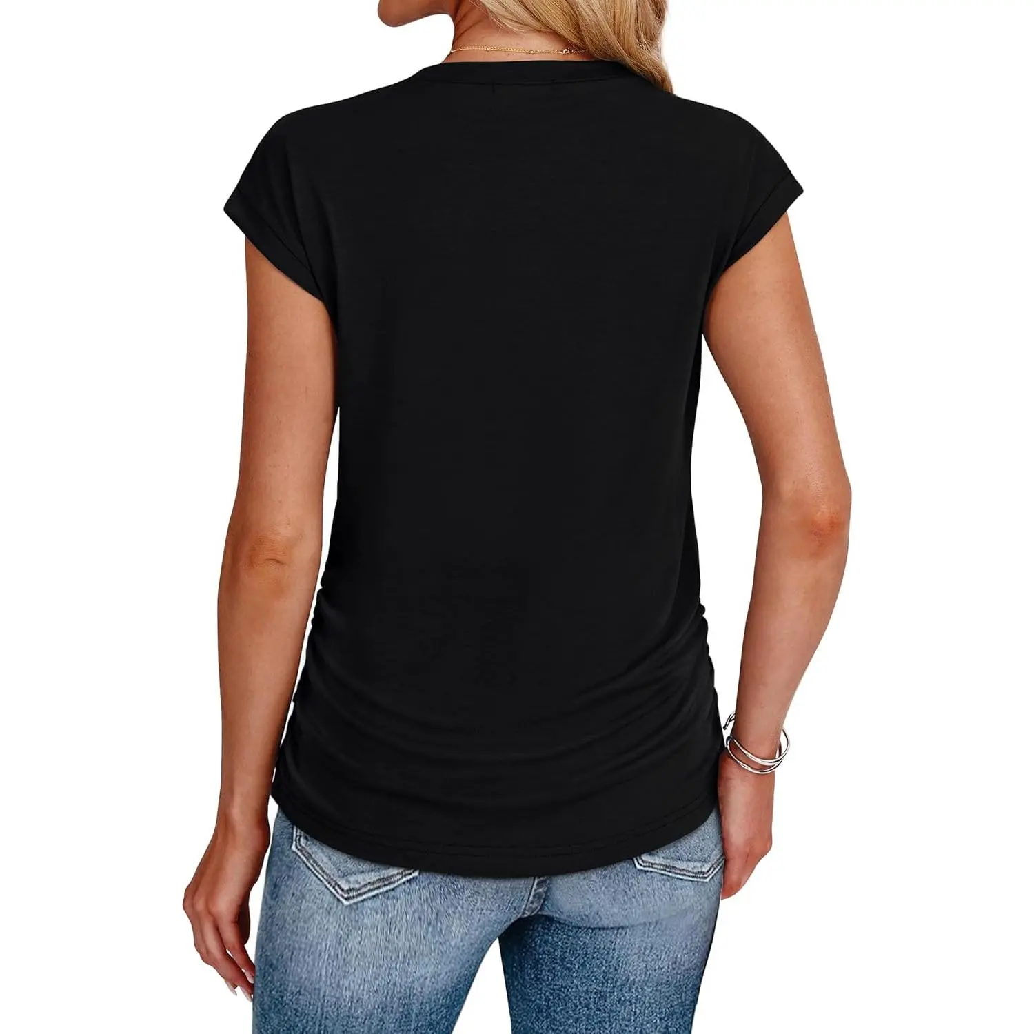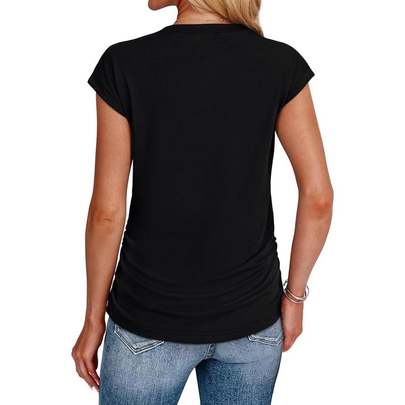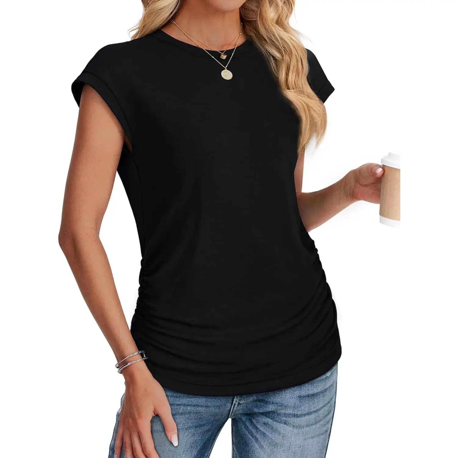 ·Ruched Design: T shirts for women with feminine side shirring that hides the belly and flatters the figure. The crew neck allows you to bend over freely, while the cap sleeves enhance the silhouette of the shirt, making it look dressier than a plain t-shirt.