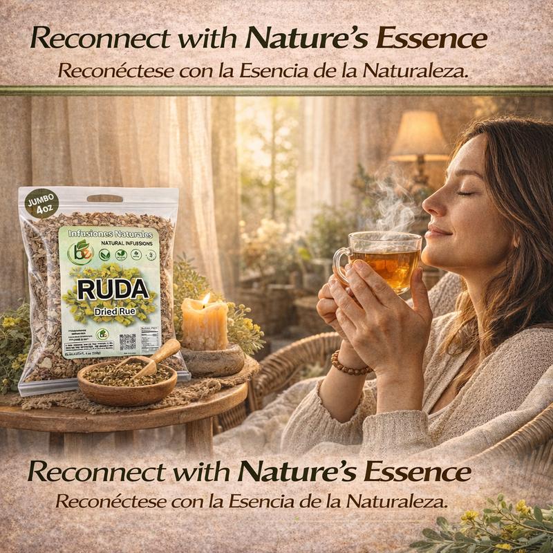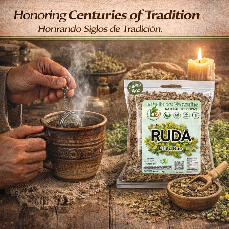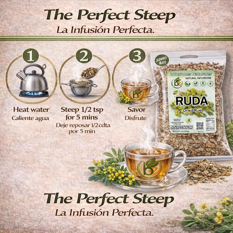 Ruda Seca Té (Rue Dried Herbs Tea) 4oz (113g) - Ruta Graveolens - 100% Natural, Vegan Experience the unique aroma and taste of Ruda (Rue) Dried Herbs Tea, a naturally aromatic and earthy herbal infusion.