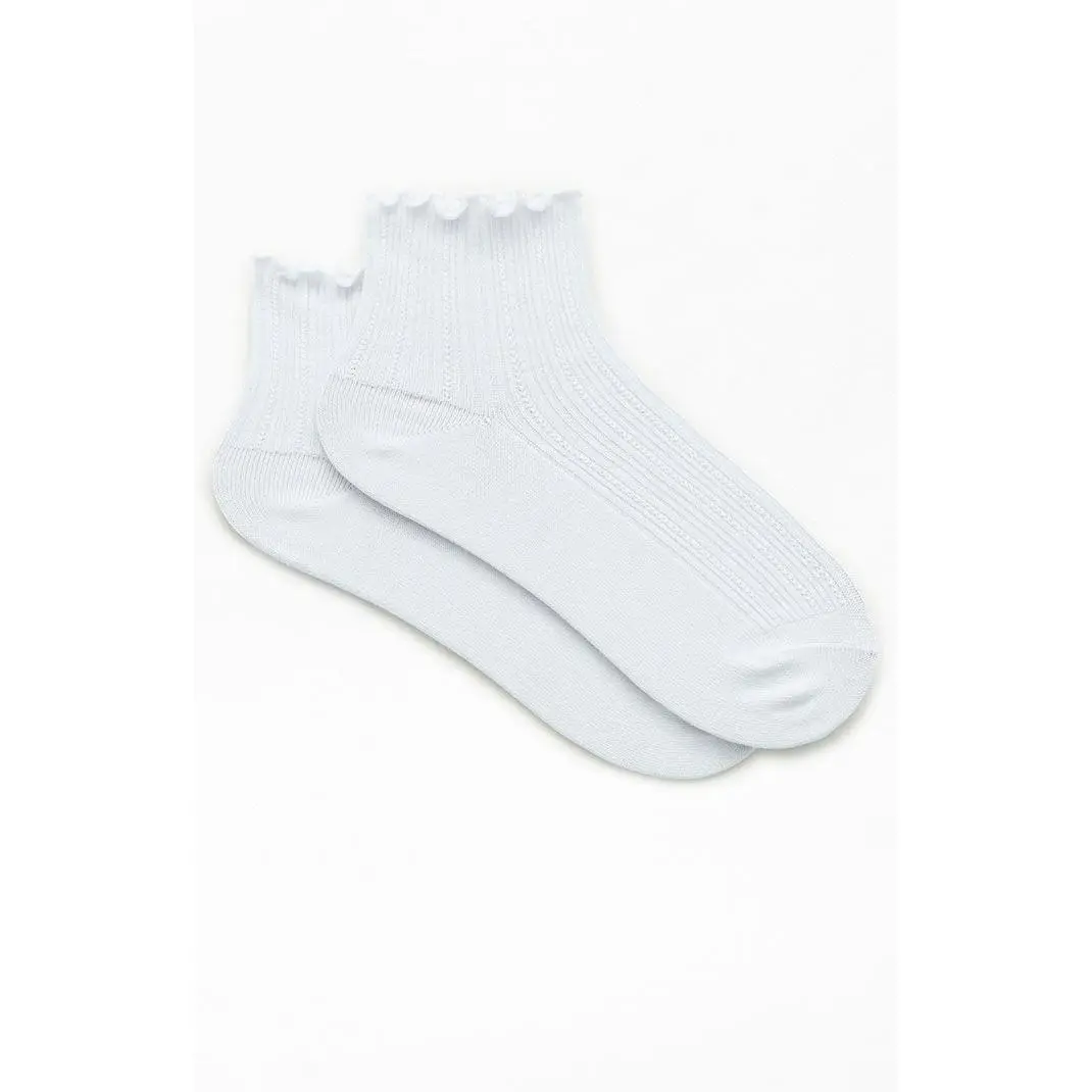 John Galt Women's White Ruffle Ankle Socks
