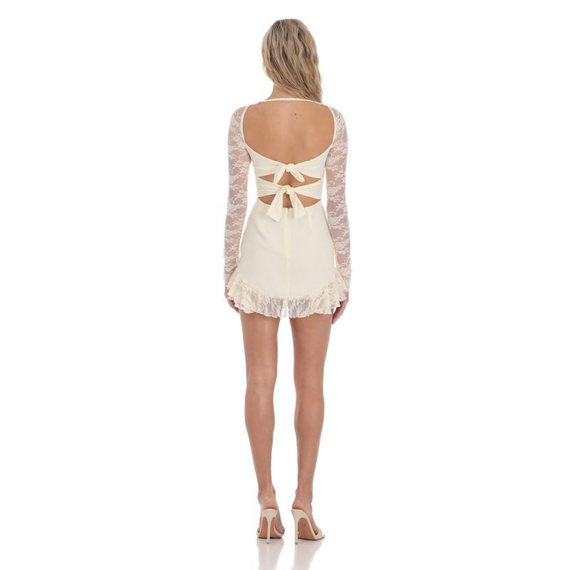 5. Long Lace Sleeve Ruffle Dress in Cream