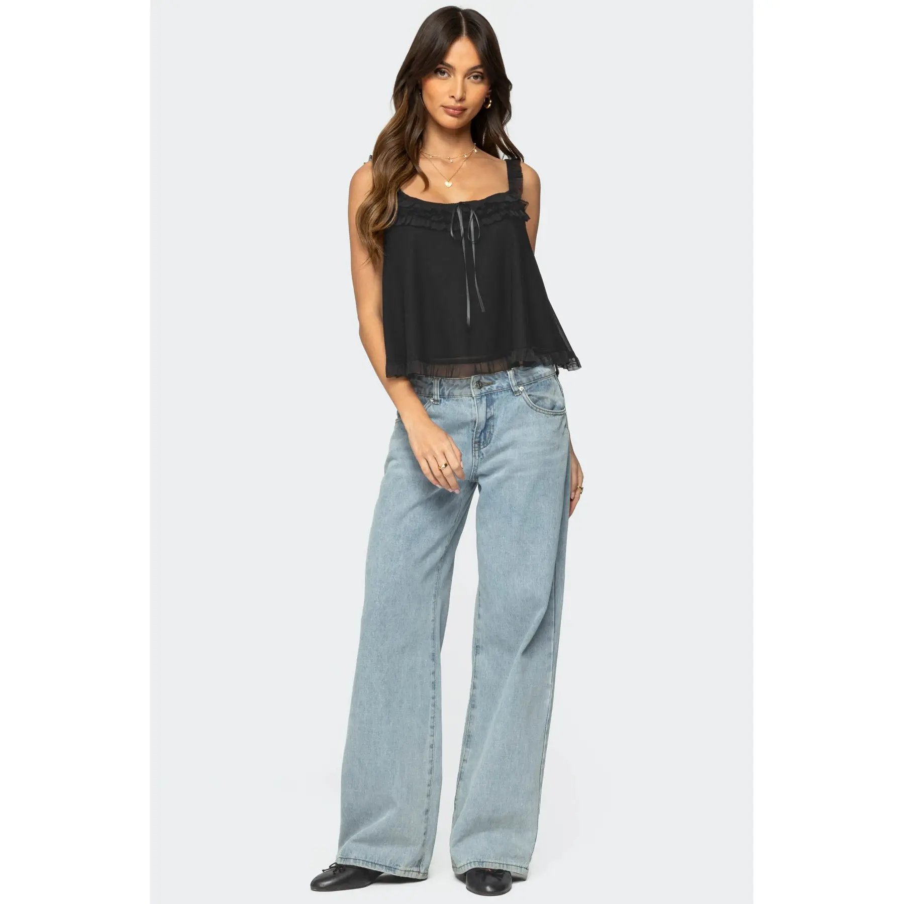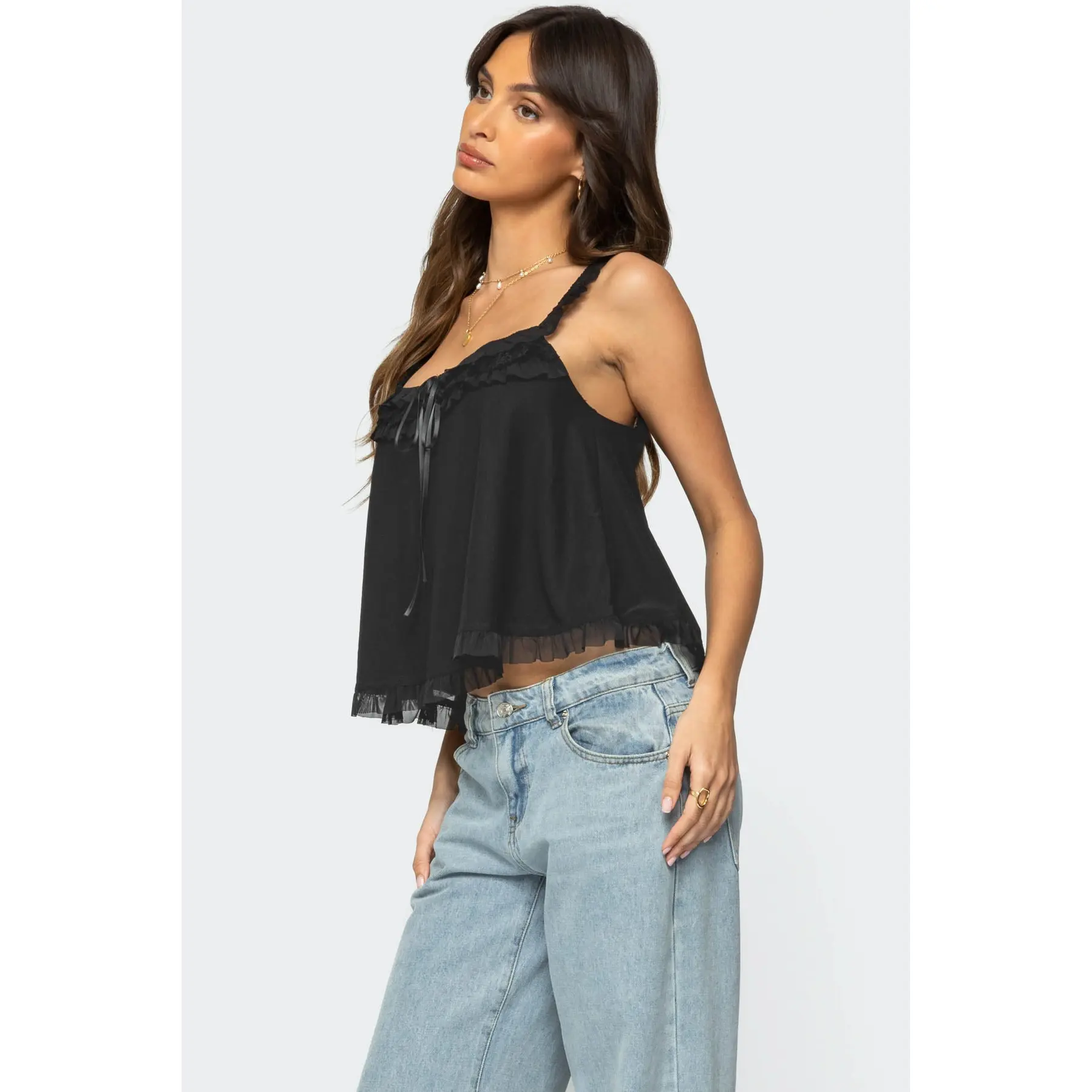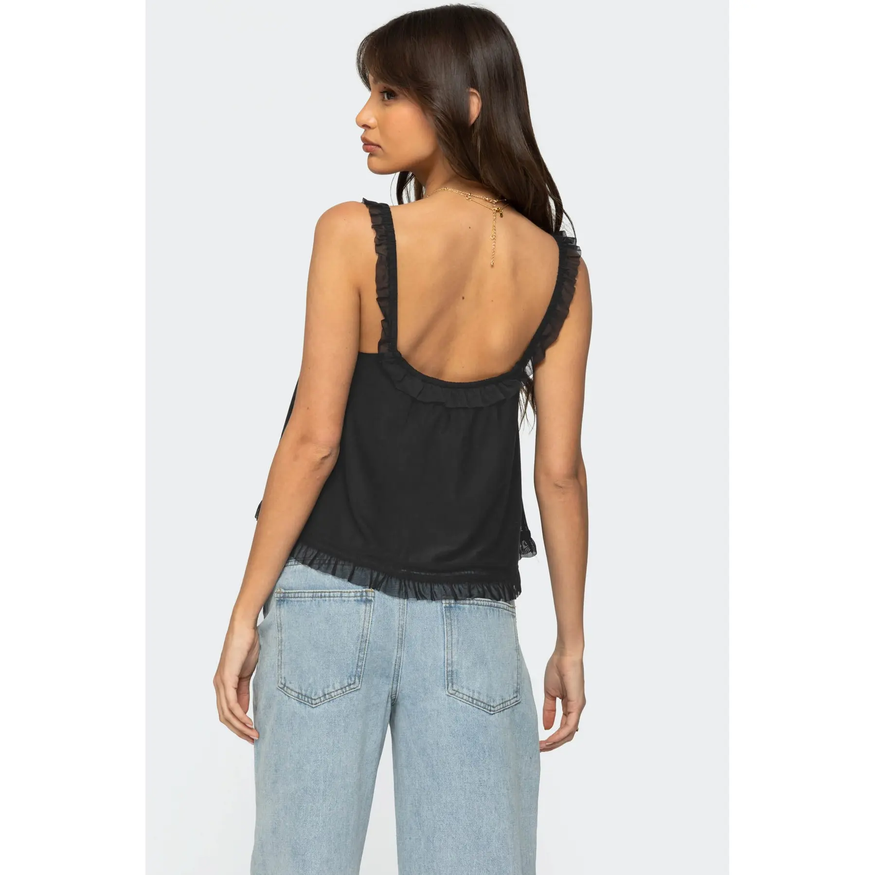 5. Ruffle Mesh Babydoll Tank Top