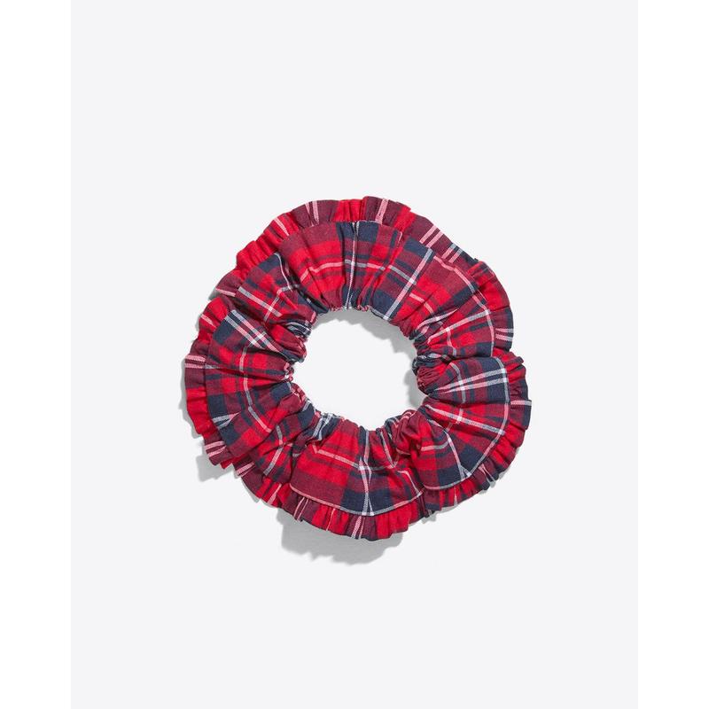 Upgrade your updo: Made from a stretch poplin in a festive plaid, the Ruffle Scrunchie is a holiday season long-hair must-have. Wrap it around a simple ponytail or a messy bun to instantly add style, polish and a bit of festive flair.