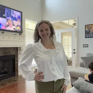 This is an adorable top 😍! I can wear it to work, church or just to hang out with friends. The material is light enough for warmer weather but also nice in a AC room. I look put together without a lot of effort. It is so affordable!! Fits TTS