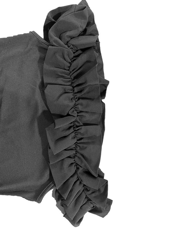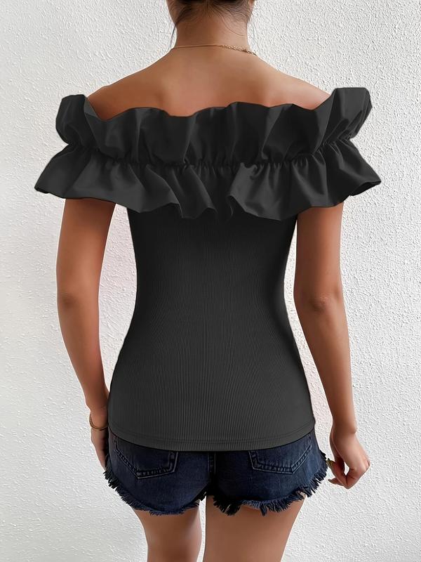Women's Off Shoulder Ruffle Trim Tee, Chic Solid Short Sleeve T-shirt for Summer, Fashion Casual Women's Top for Daily Wear