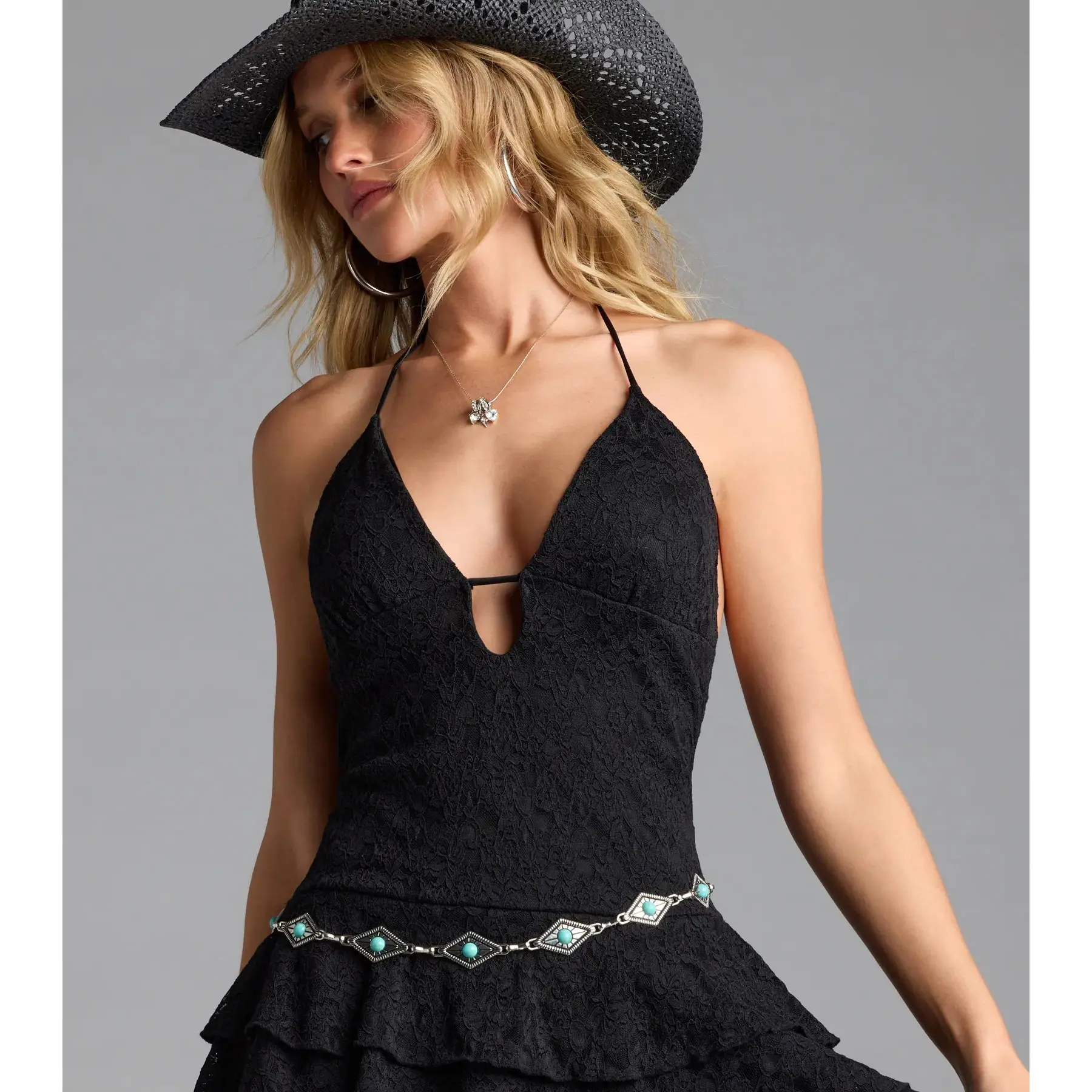 This dress is so cute paired with like a cowboy hat and some cowboy boots line. Dancing outfit goes crazy.