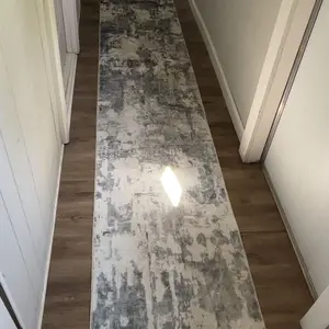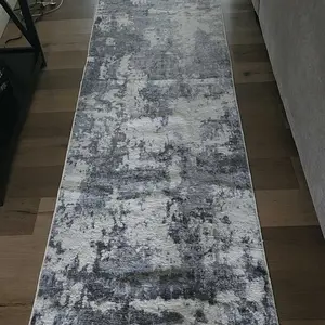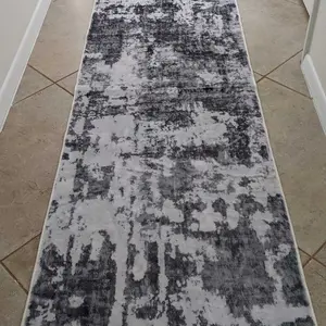 Super soft and perfect length however, the color is not what I expected. I thought it would be all dark gray throughout the whole rug, but it's not. It goes light gray to the other side, which is disappointing but I didn't want to go through the hassle in returning it. Next time will be cautious with the abstract rugs.