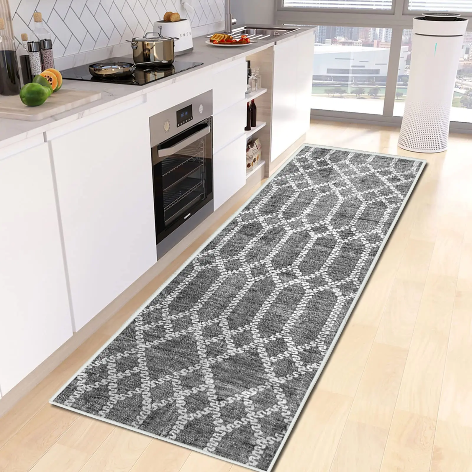 It looks perfect on my kitchen! The perfect rug and is so soft!! Definitely I must have!