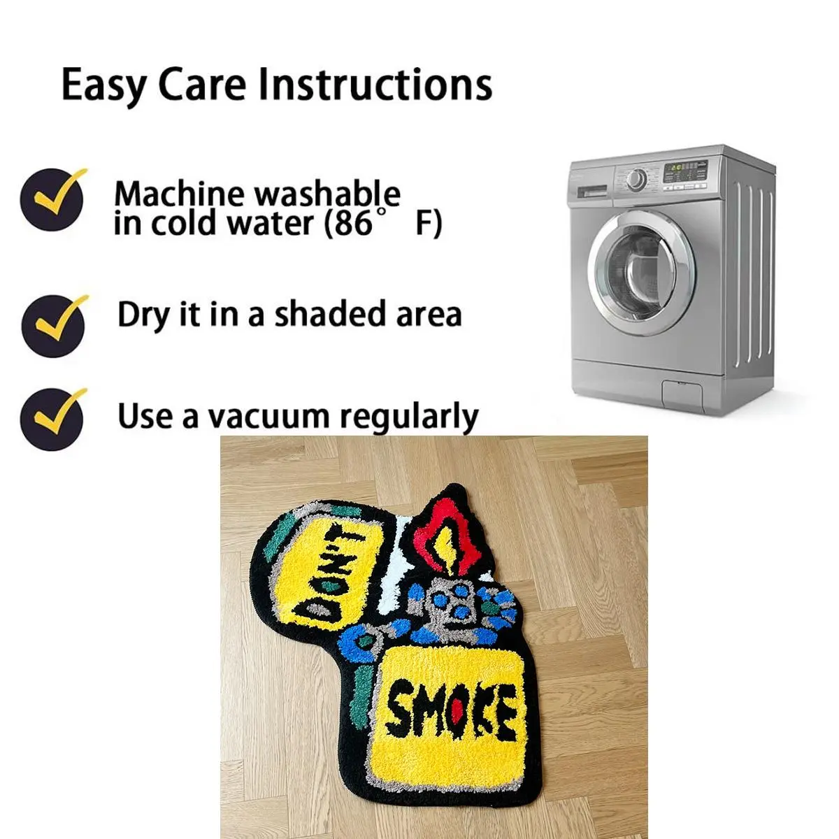 【Non-slip Safety】: Equipped with a TPR non-slip backing, this rug provides secure footing, reducing the risk of slips in living spaces and bathrooms.