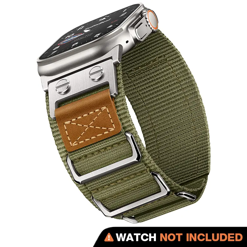 Drawing inspiration from the Air Force, this iWatch ultra band features an aviator style that captures the essence of a true adventurer. Crafted with precision and built for durability, this watch Rugged band combines the toughness of ballistic nylon, stainless steel, and genuine leather for a truly robust accessory