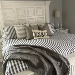 This is lightweight enough for summer as a throw on the bed, then filled with comforter for the winter, it is very dark charcoal gray stripes, exactly what I was hoping for. Exactly as pictured.