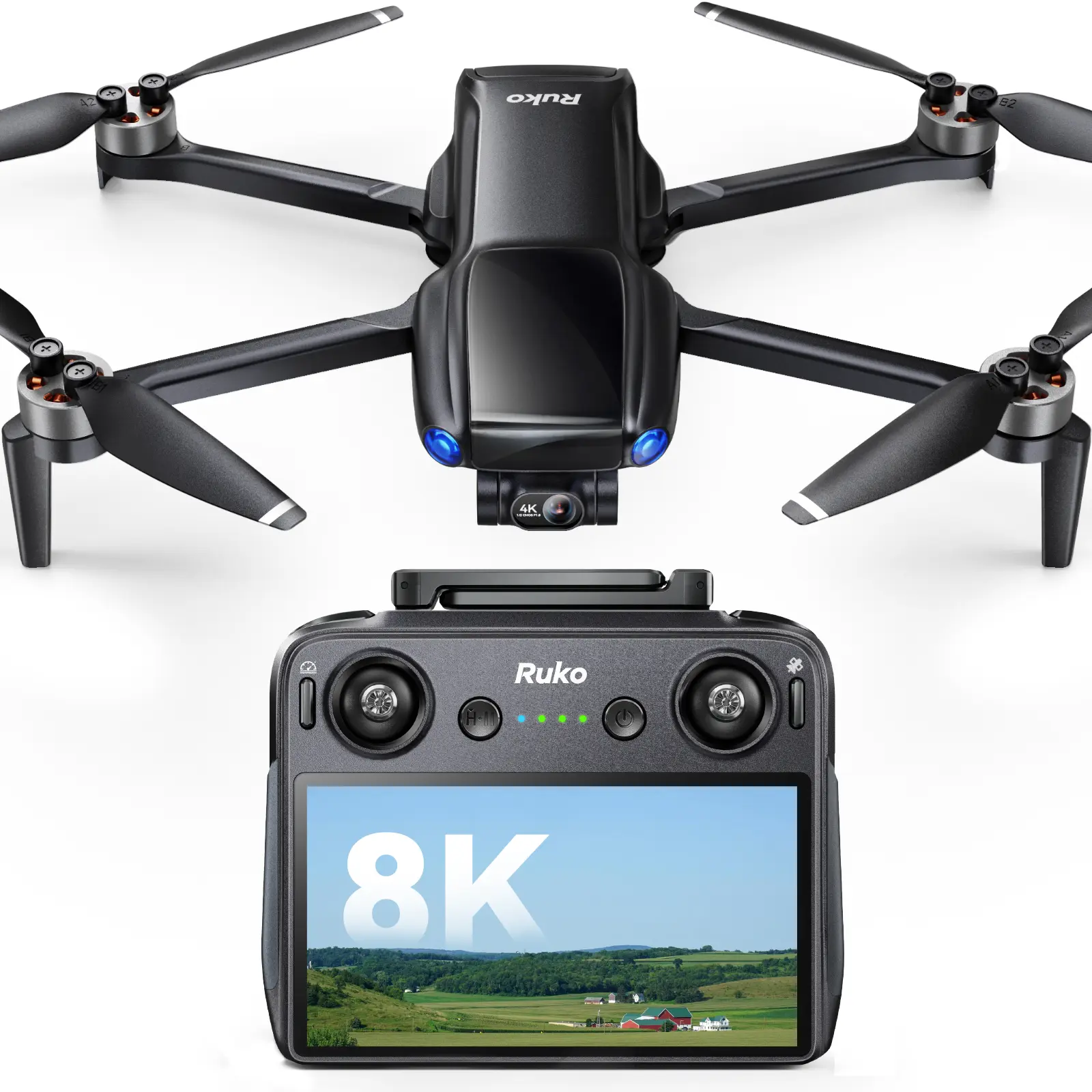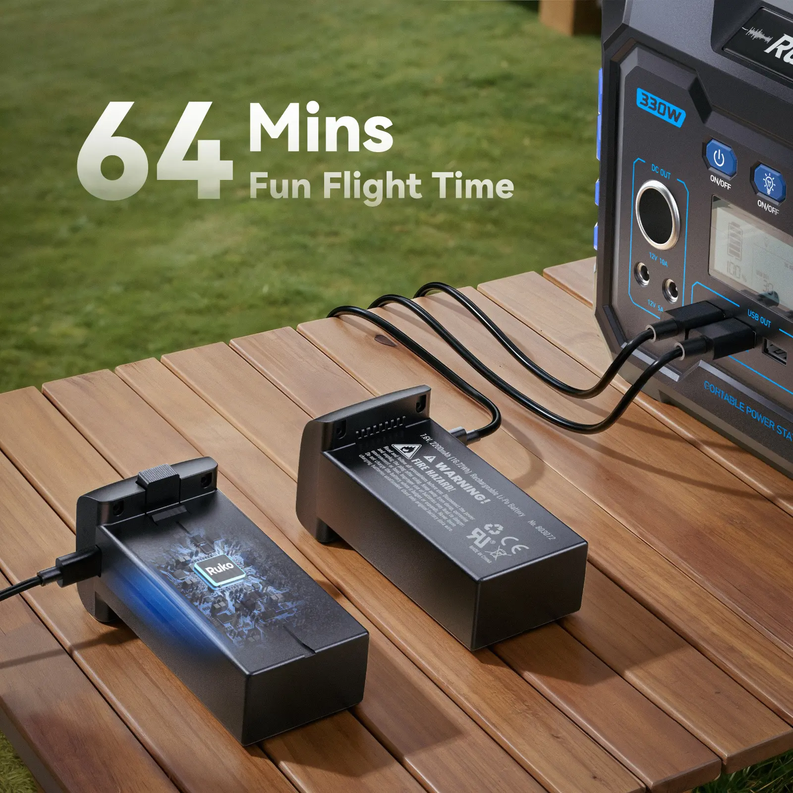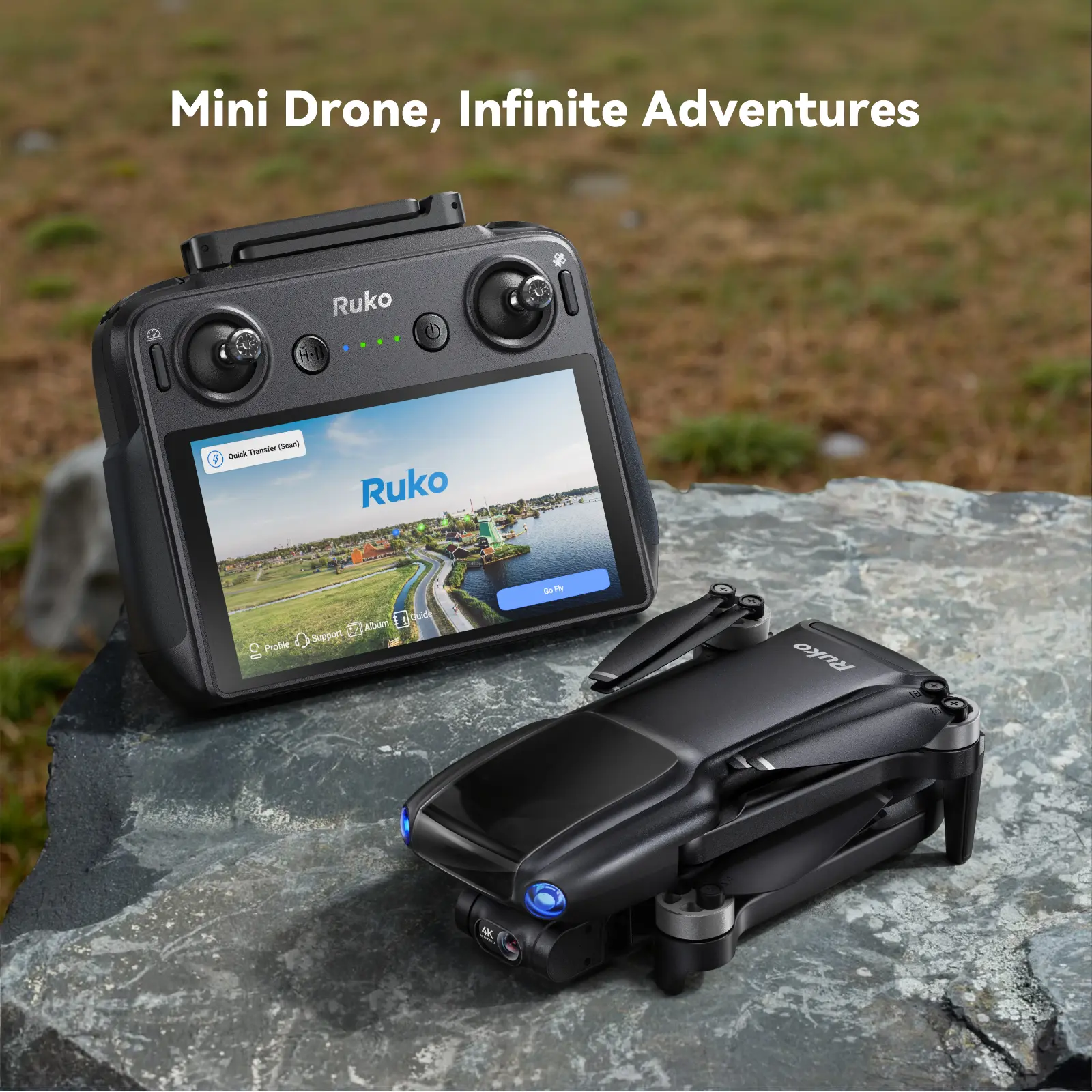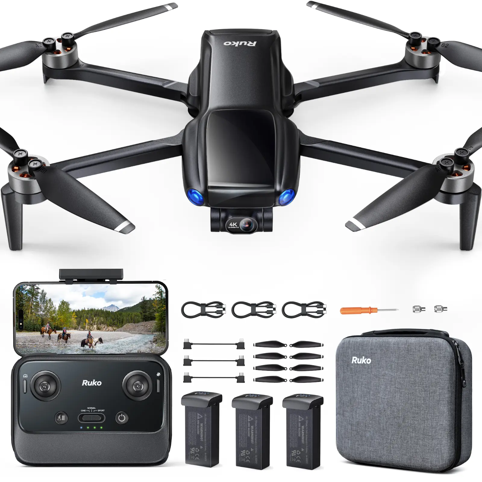 ·【64-Min Flight Time & RK3.0 Smart Charge】2 intelligient batteries offering 64 minutes flight time. Supports PD 3.0 fast charging and allows all batteries to charge at once - keep ready wherever you go - indoors or outdoors. For optimal charging performance, it is recommended to use the Ruko PD65W charger or R299 portable power station.