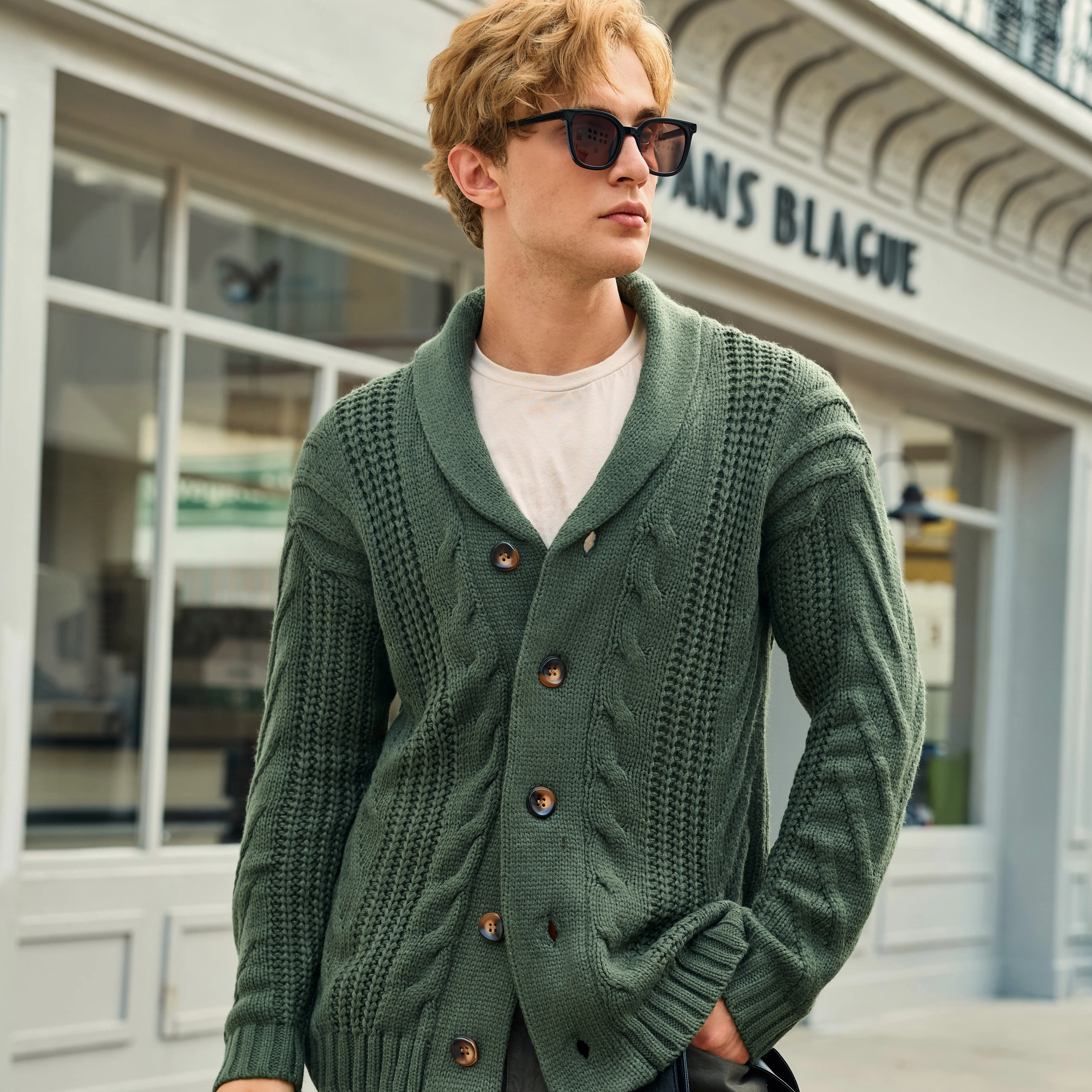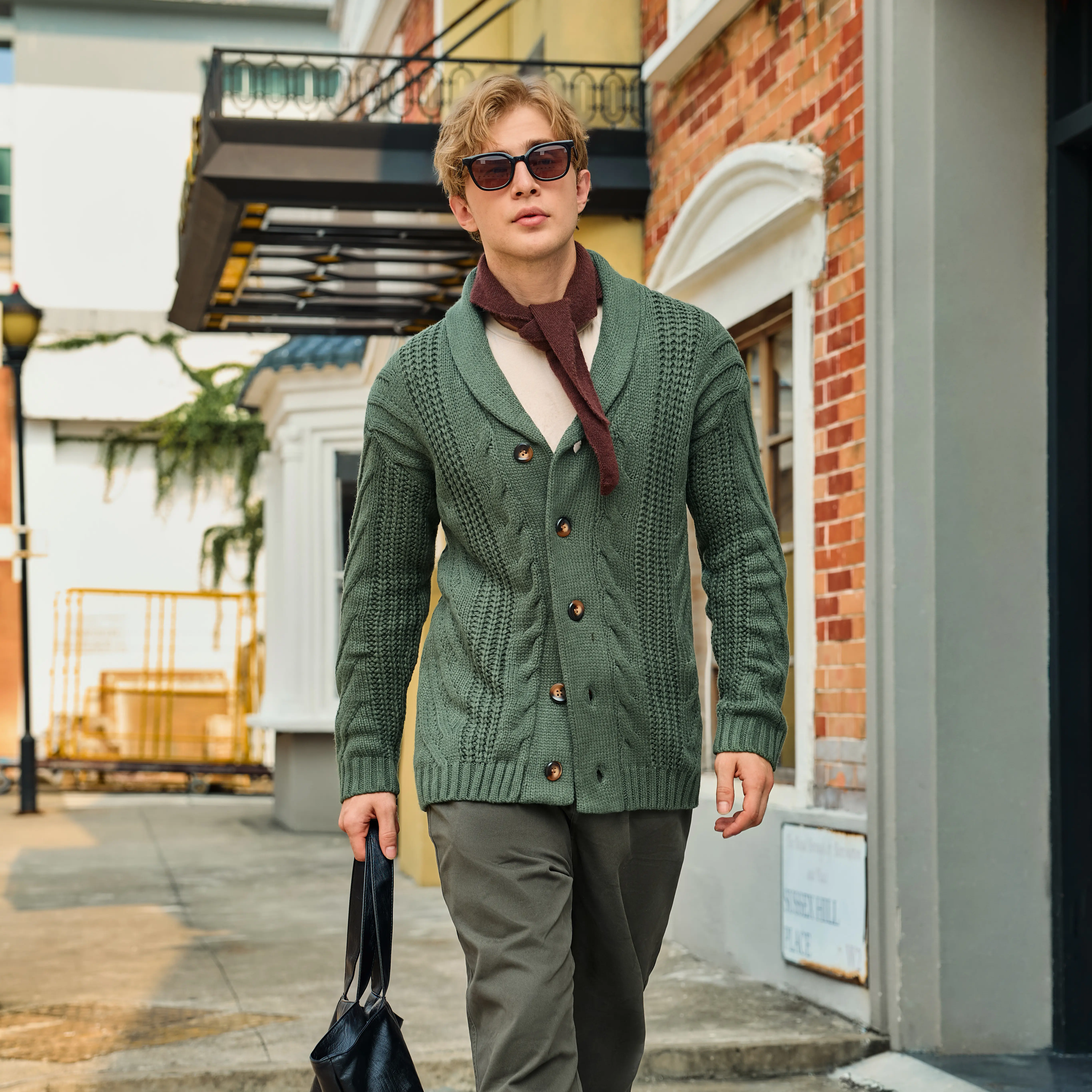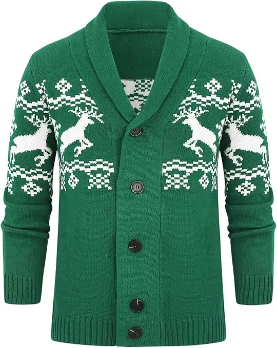 Runcati Men's Cable Knit Cardigan Sweater