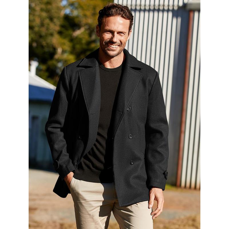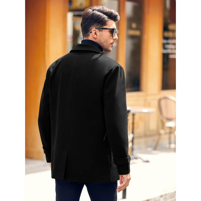 Feature:Winter coats for men, designed with double breasted, turnover collar and two side pockets, long sleeve, slim fit, back adopt streamline design brings you a more elegant experience.
