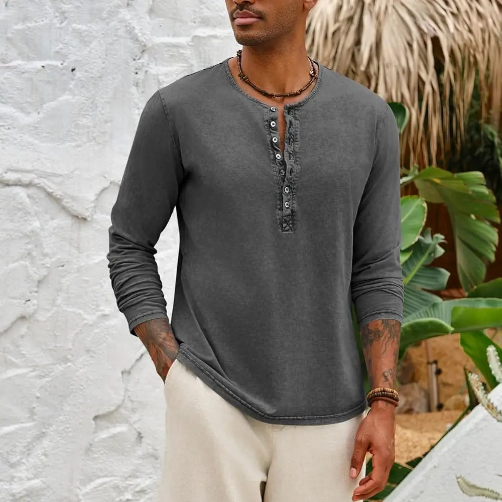 ·Men's button down long sleeve tee shirts, slim fit henley shirts with seven buttons front design, soft to the touch for comfy wearing, pure cotton feels terrific all day long. Good for all genders and for all seasons