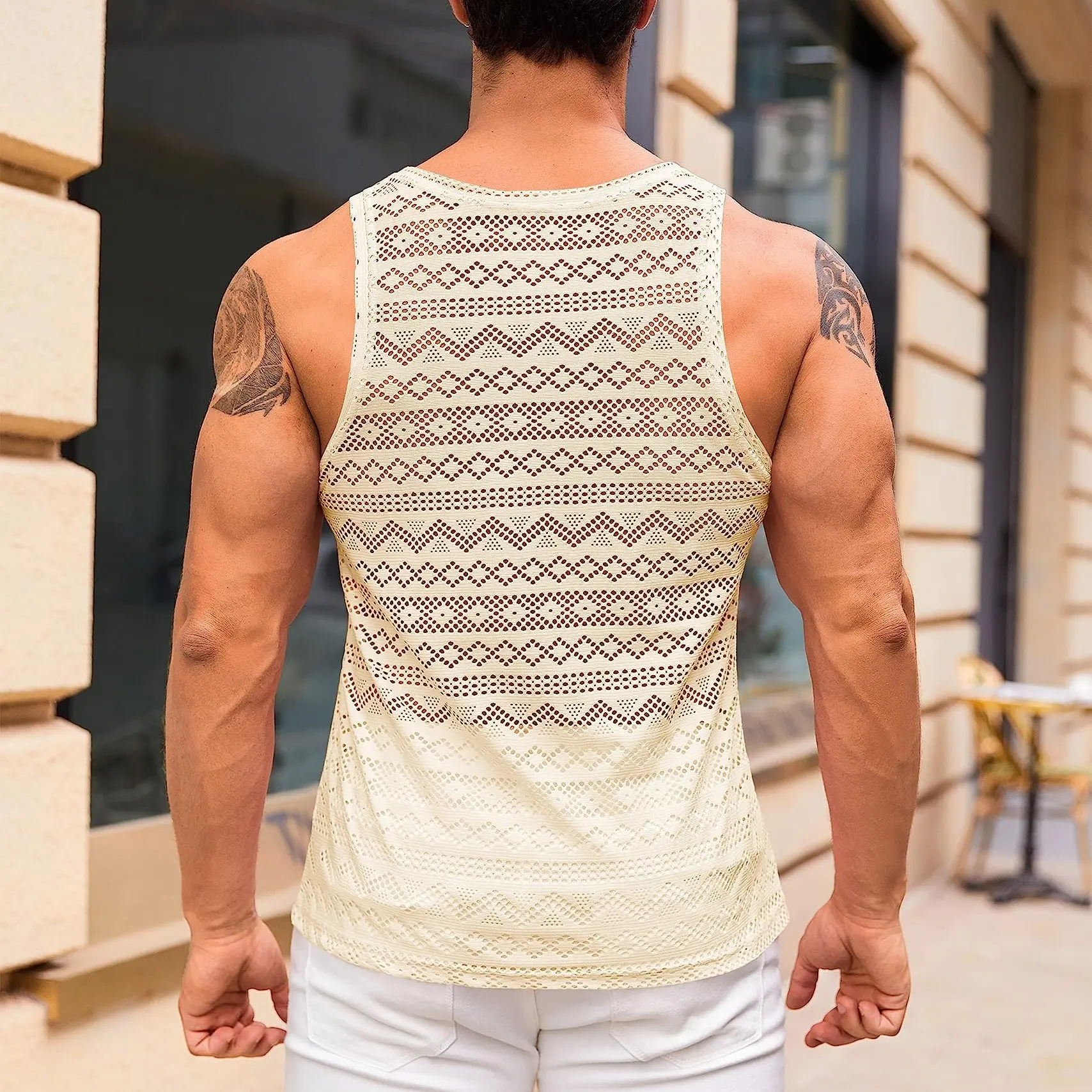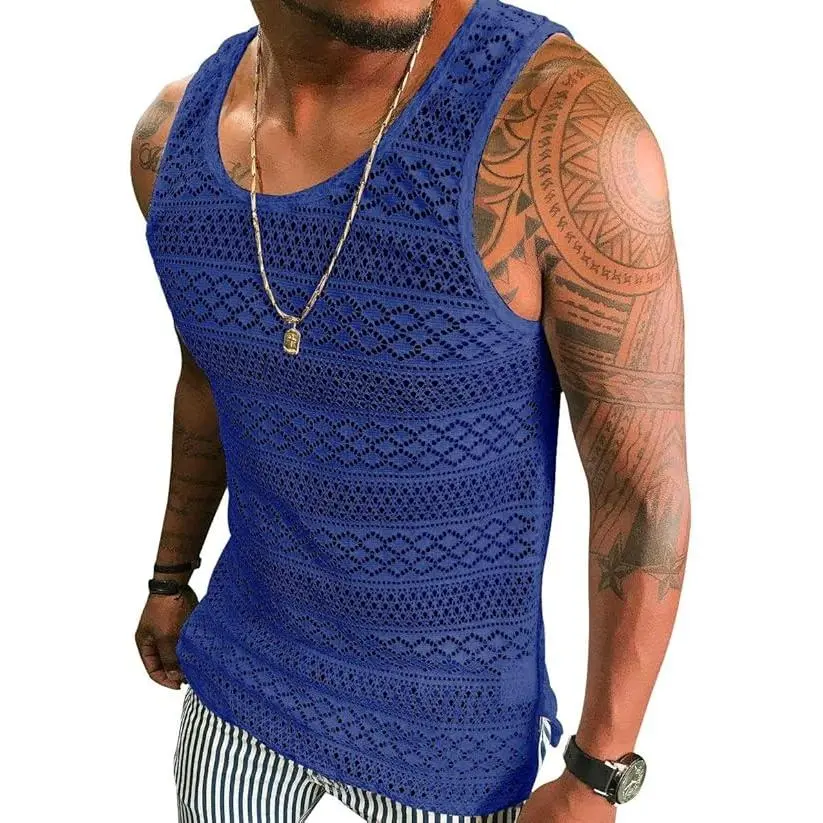 5. Runcati Mens See Through Vest Crewneck Sleeveless Tank Tops Muscle Sexy Mesh Shirts