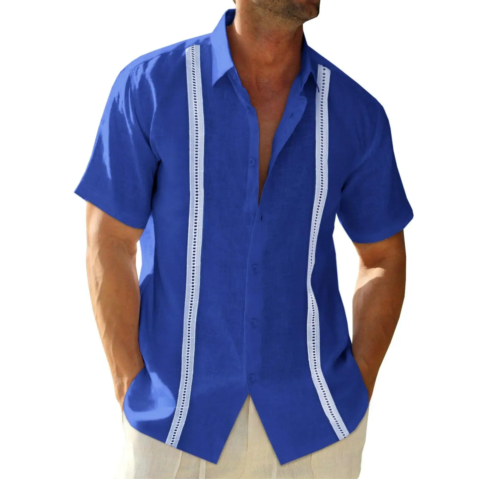 Design: These men's casual shirts are feature with short sleeve, embroidery guayabera cuban design, classic turn-down collar, button closure, solid color, regular fit style. The vertical pleats design adds a vacation flair