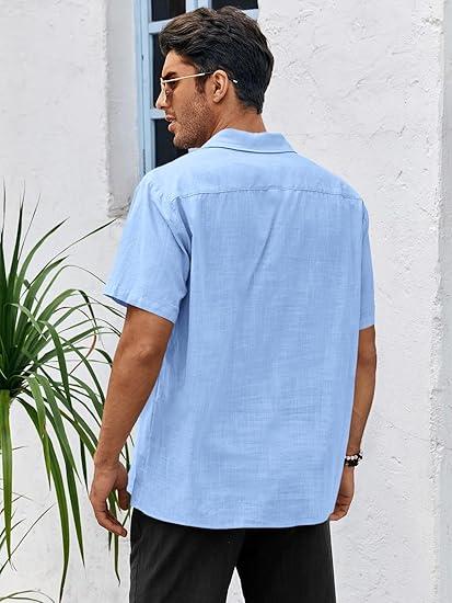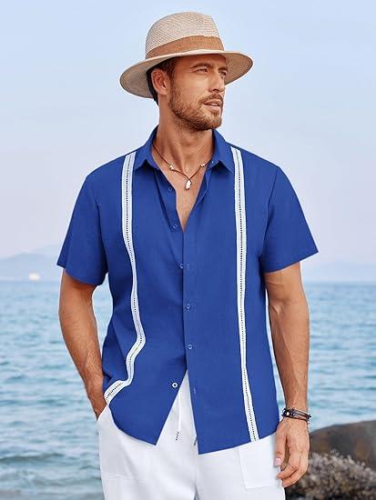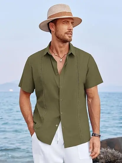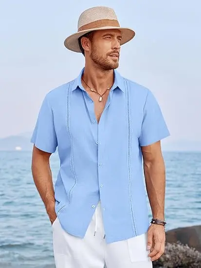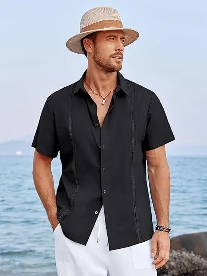 Fabric: Mens cuban guayabera shirt is made of high quality cotton linen fabric, lightweight, breathable, soft, wrinkle free, and skin-friendly. Summer beach vacation shirts for men provides ultra comfort and flexibility wearing experience