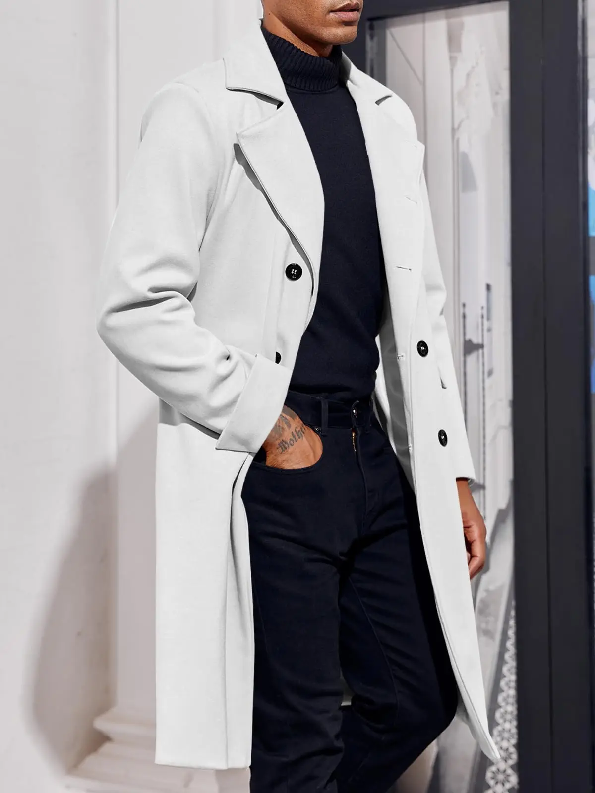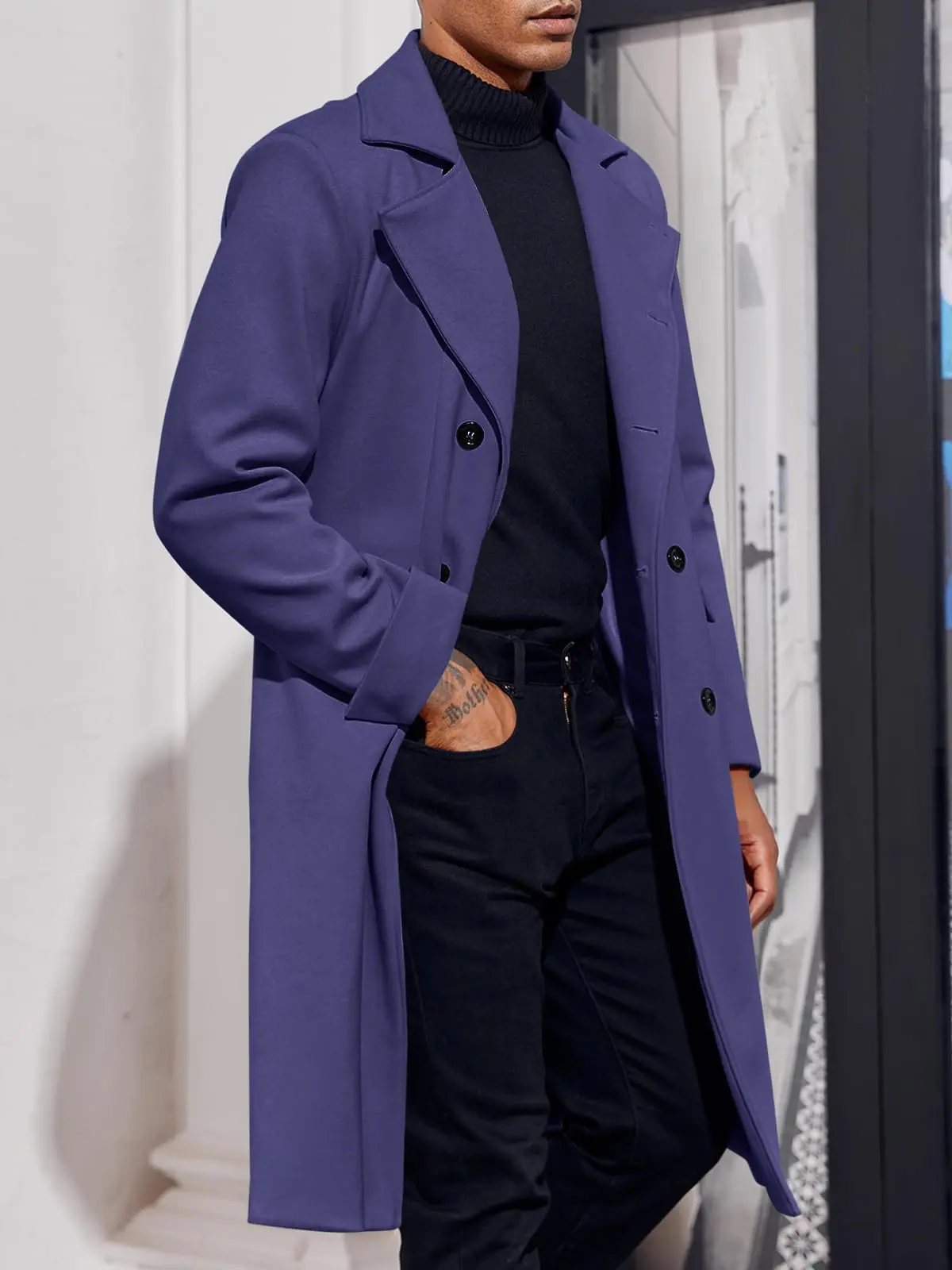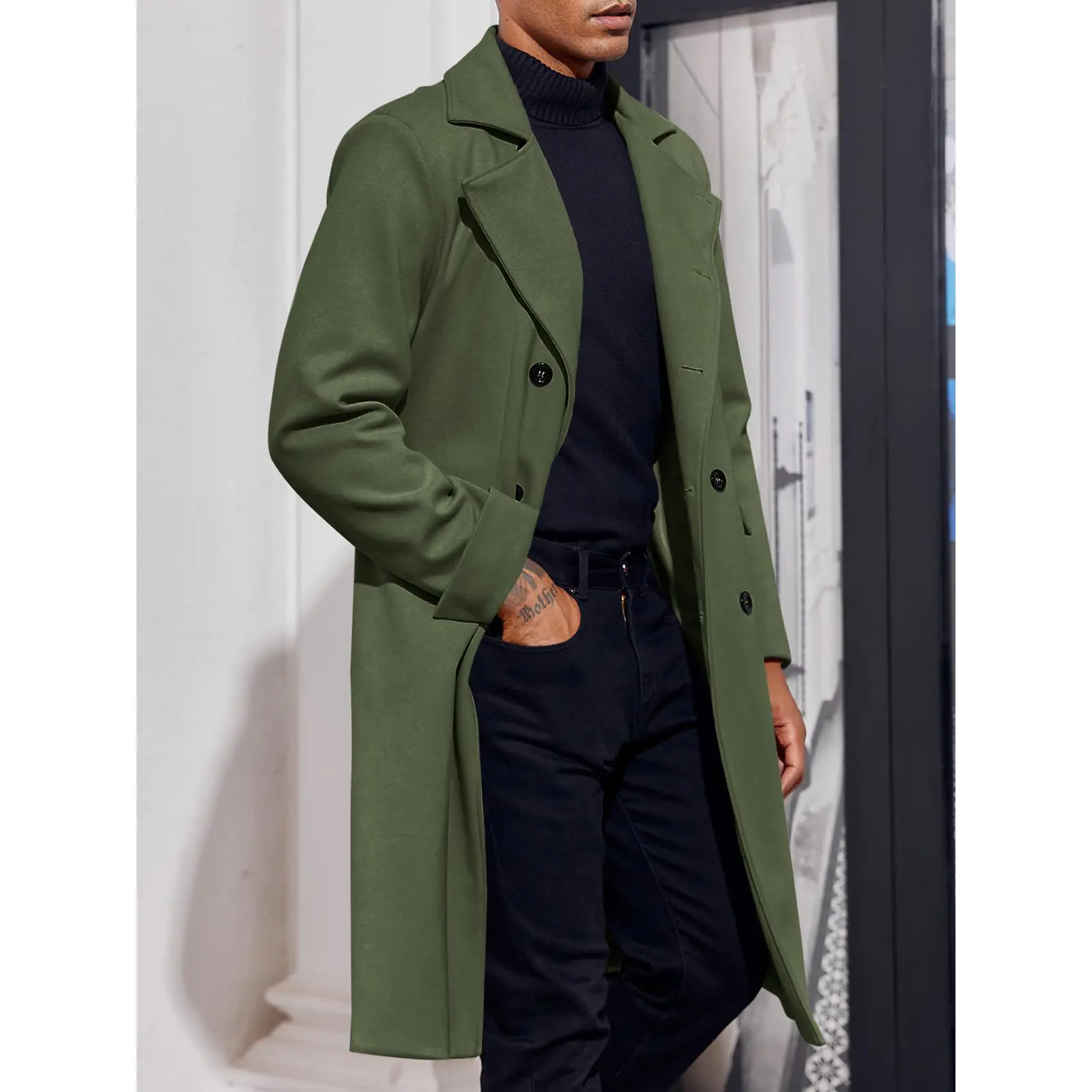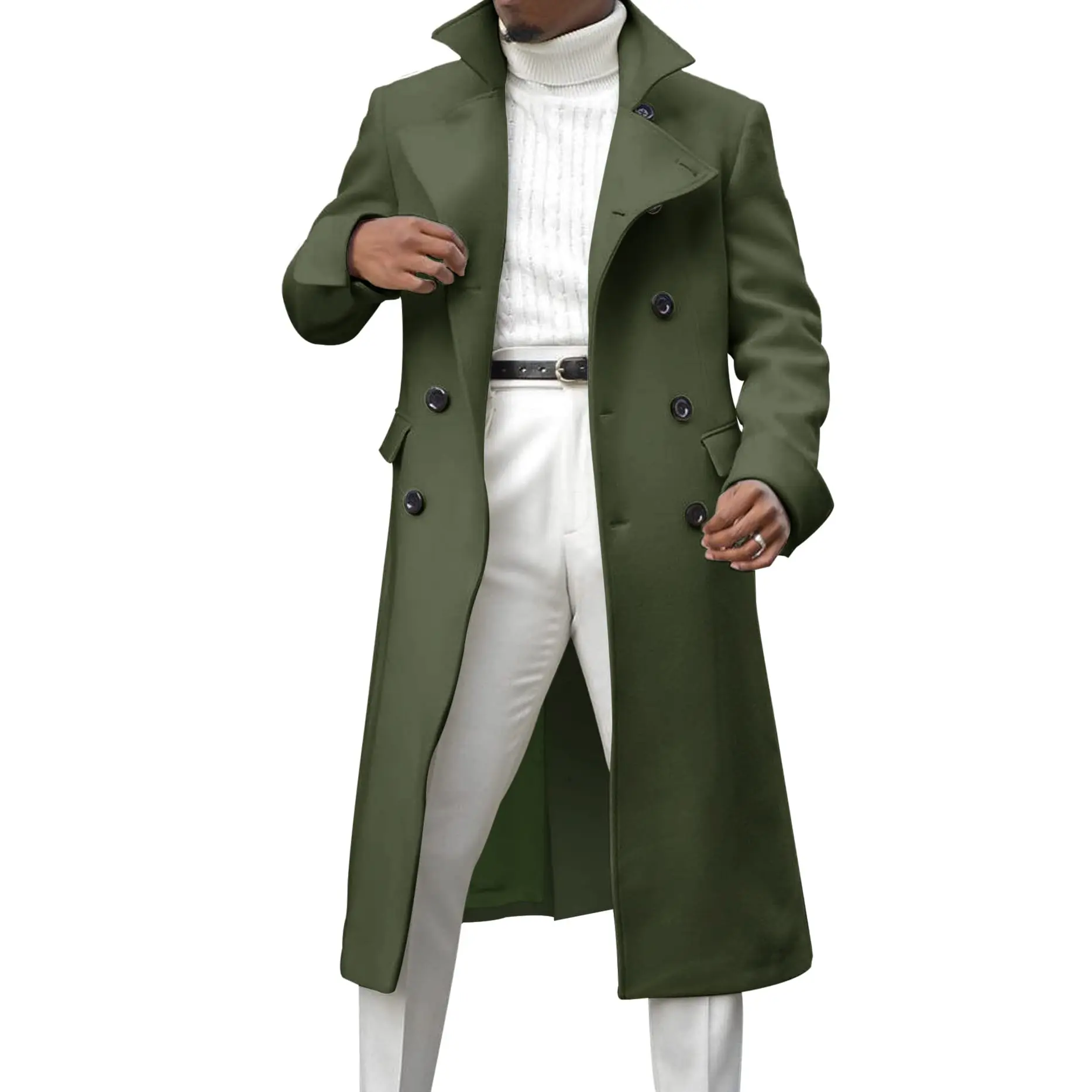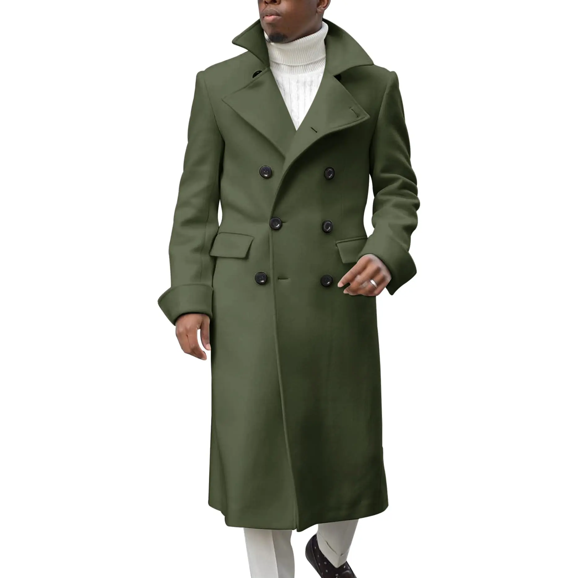 ·Features: Long overcoat, long sleeve, classic lapel collar, double-breasted closure, two side pockets.