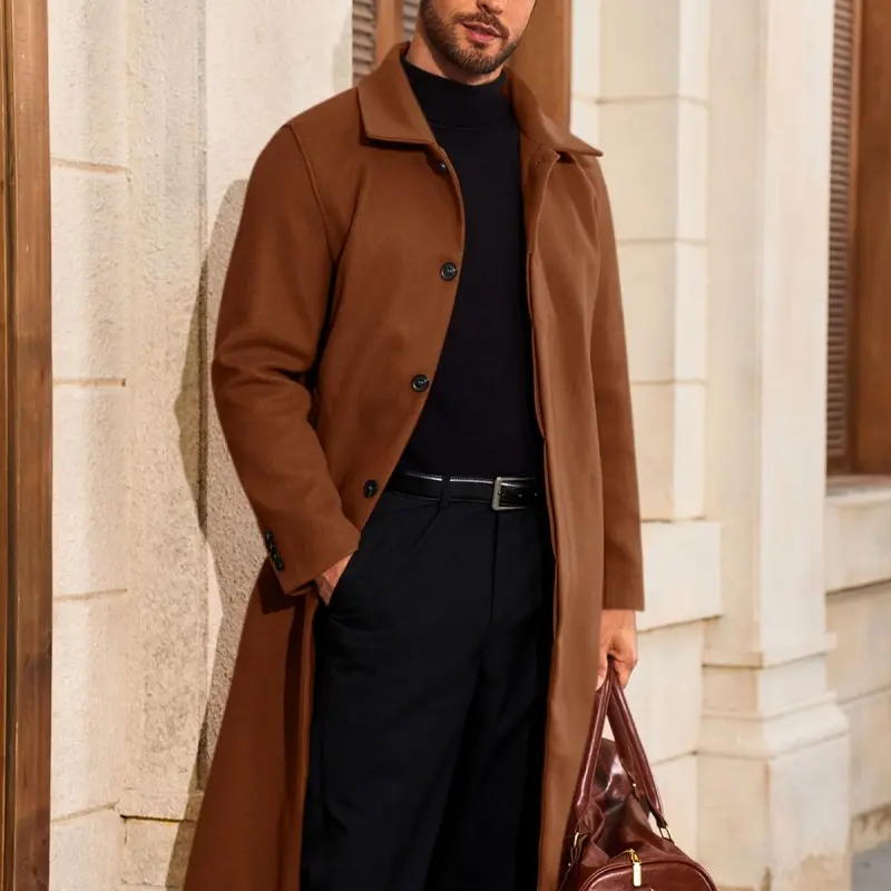 Stylish Design: Fall winter long trench coat for men, it features with a single-breasted front, hide button closure, lapel collar, sturdy buttons, two side slant pockets and one inner pocket, this fashion pea coat exudes sophistication. The modern fit and calf-length provide a polished silhouette, perfect for both casual and semi-formal occasions